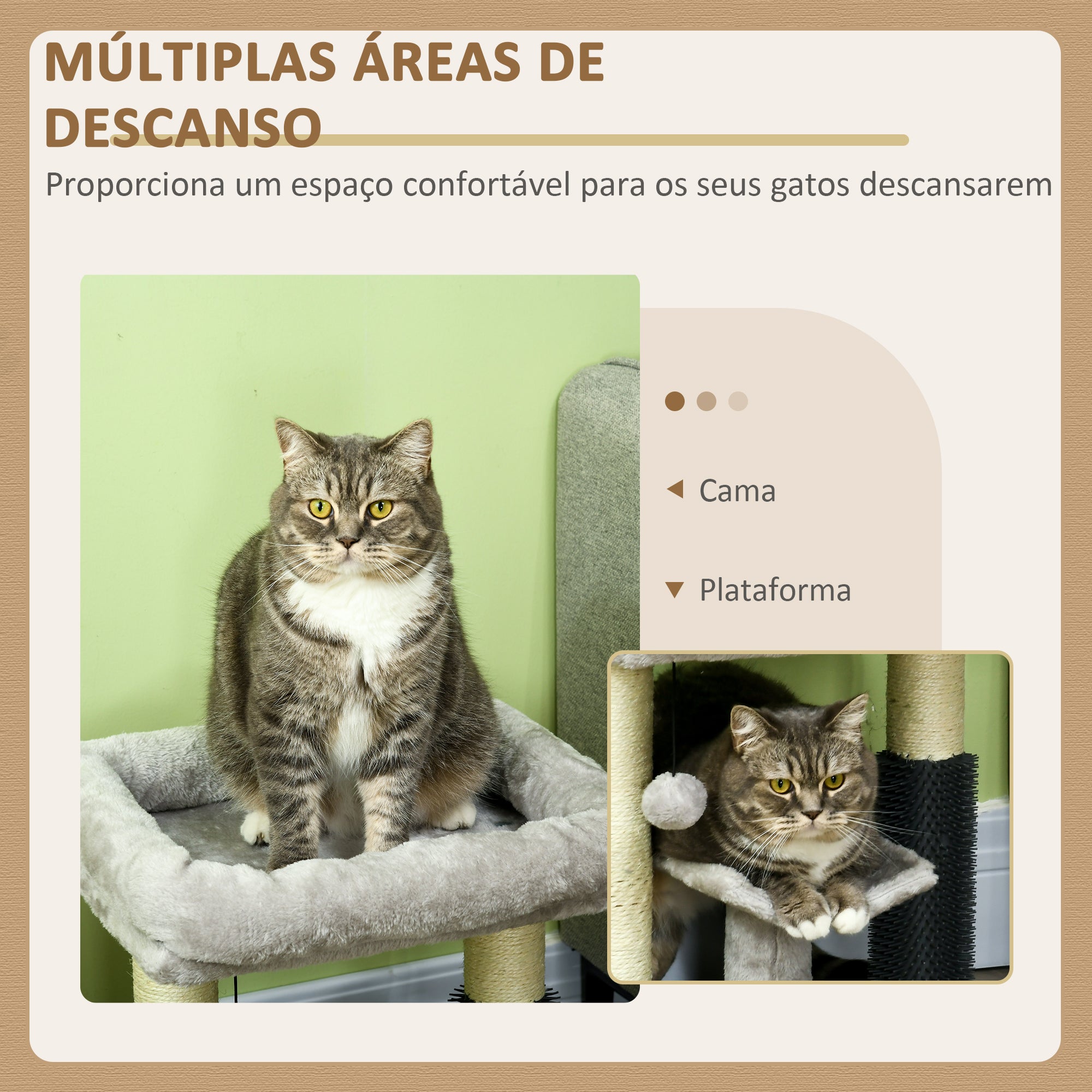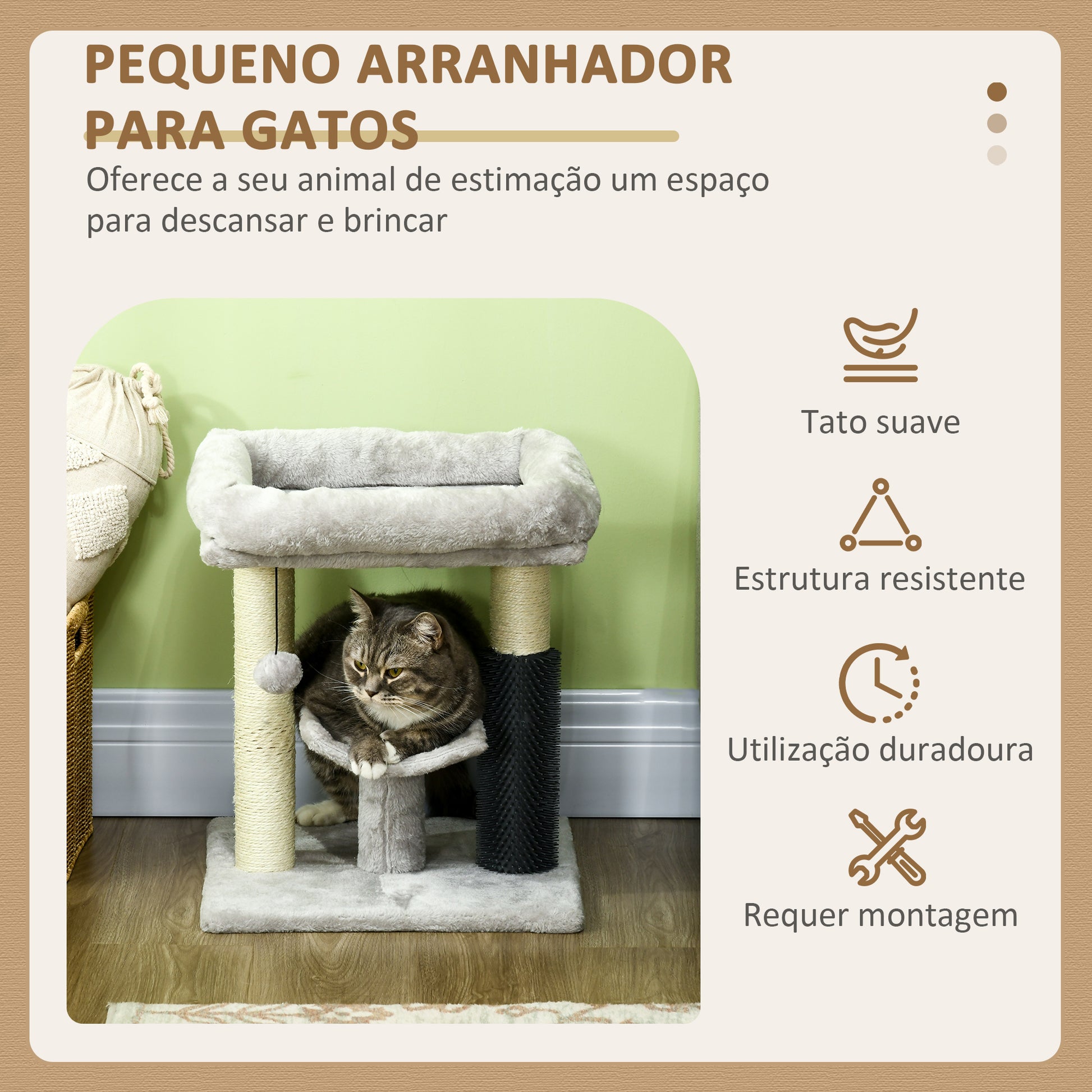 O Arranhador para Gatos em Cinzento é o espaço ideal para o seu felino descansar, brincar e afiar as garras. Com uma cama acolchoada, prateleira elevada, postes de sisal e escova de limpeza, este arranhador proporciona conforto e diversão para o seu gato.