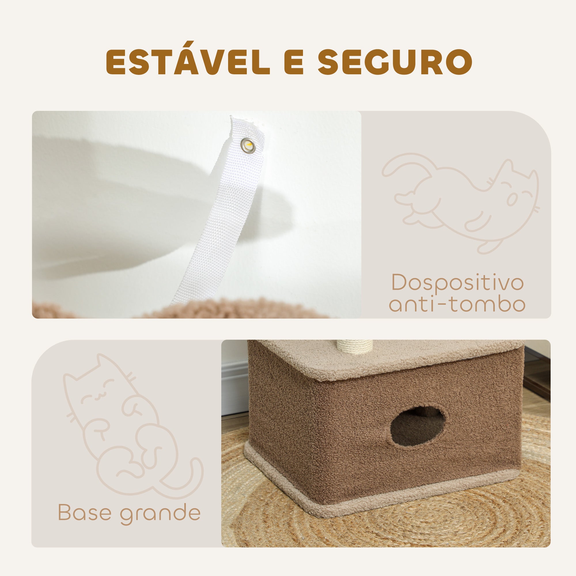 Proporcione ao seu gato um espaço confortável e divertido com este arranhador marrom de 48x40x133 cm. Inclui uma cama de pelúcia, caverna espaçosa e plataformas de salto para o descanso e diversão do seu felino.