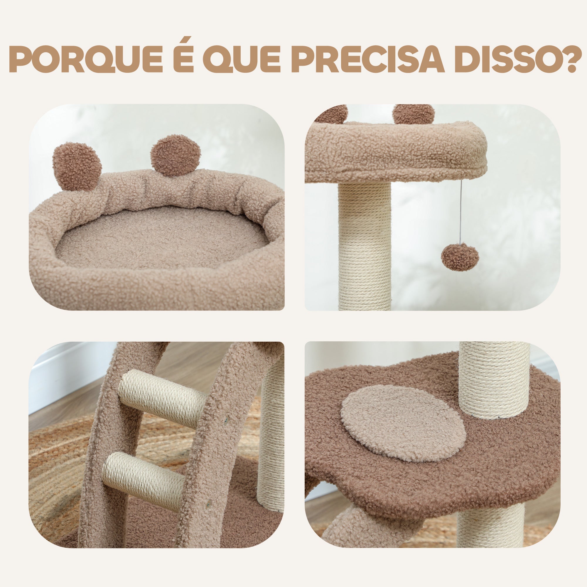 - Outras especificações: Postes revestidos em juta, base sólida em painel de melamina de madeira, requer montagem