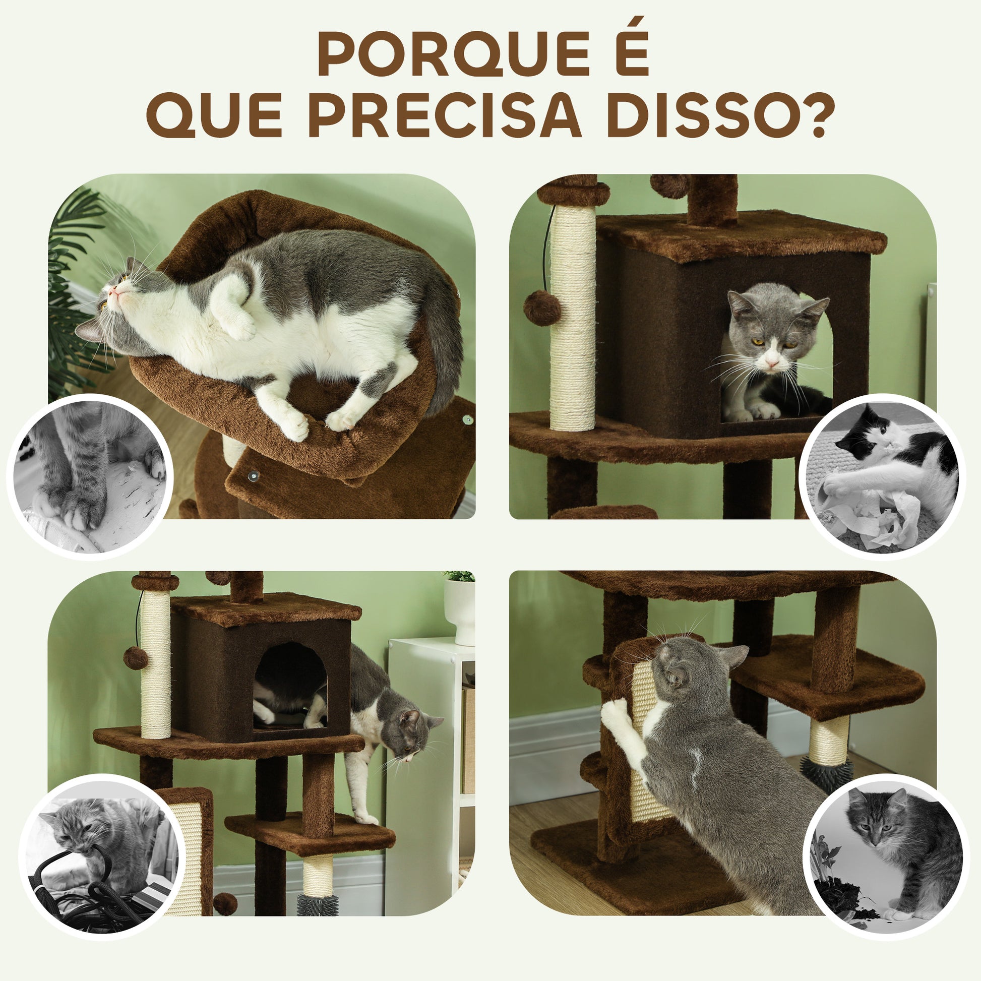 - Outras especificações: Inclui cama, caverna, plataformas, escova, bolas de brincar e almofada para arranhar