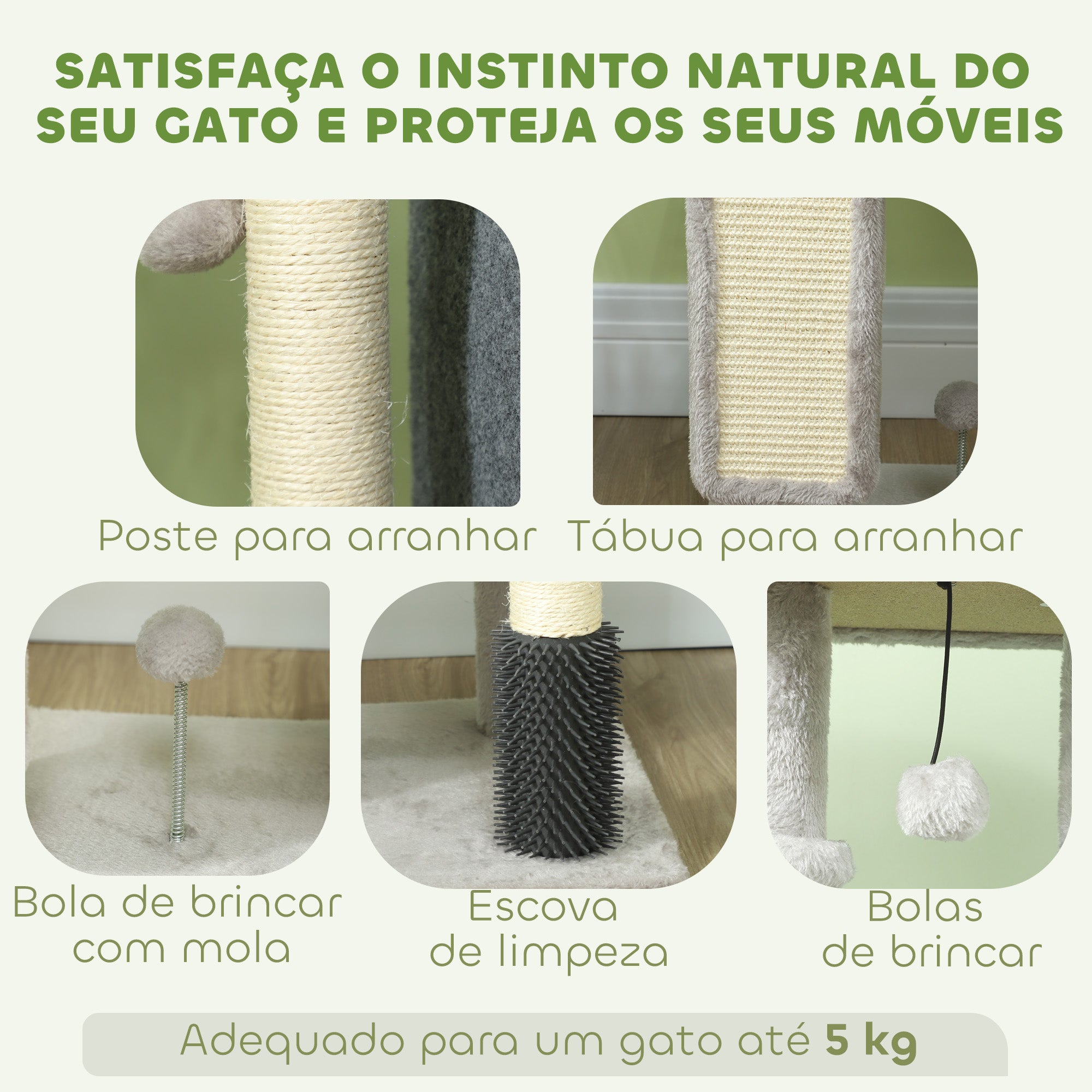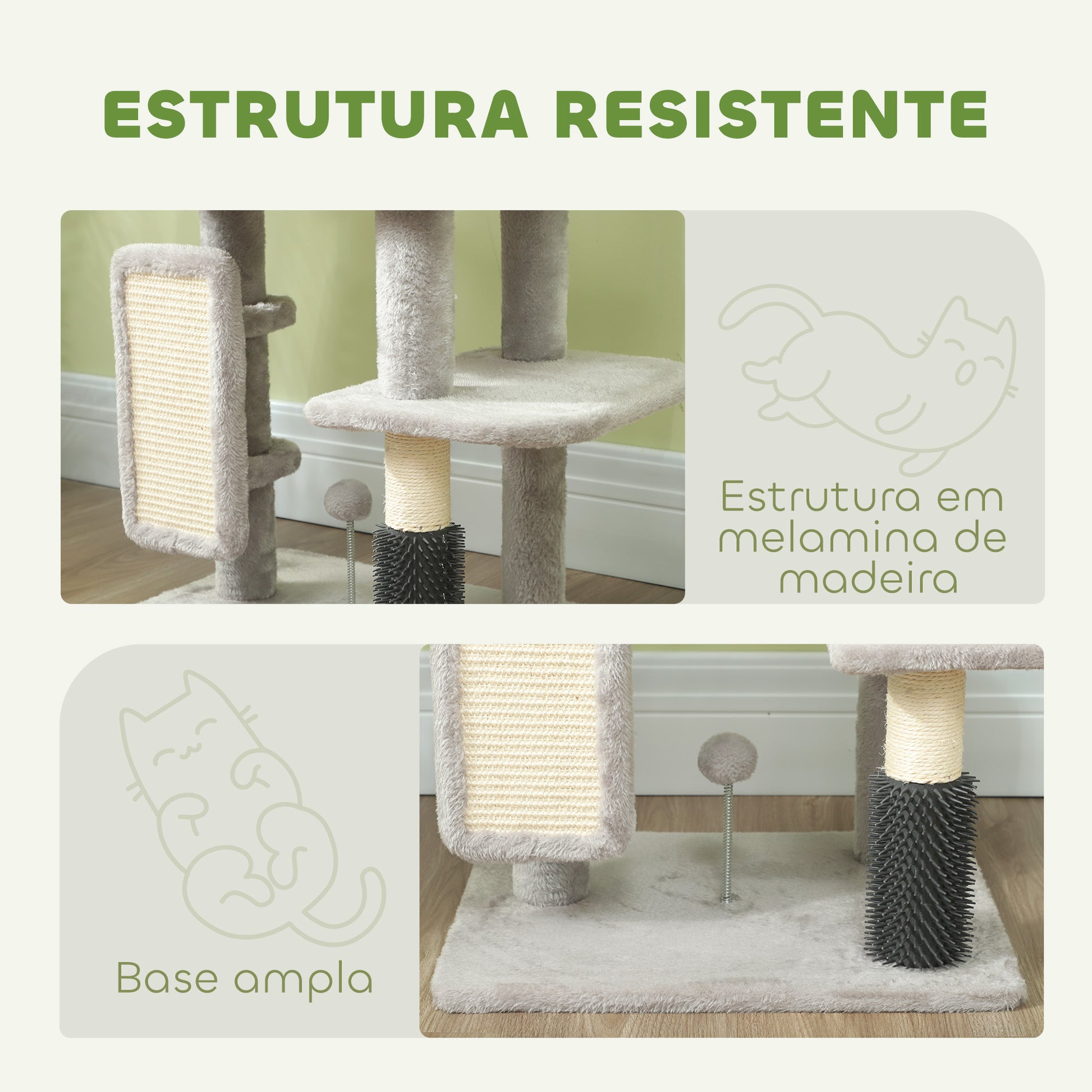 - Benefícios: Centro de atividades para manter o seu pet ativo, postes e tapete para arranhar evitam danos aos móveis, revestimento em felpa suave para máximo conforto