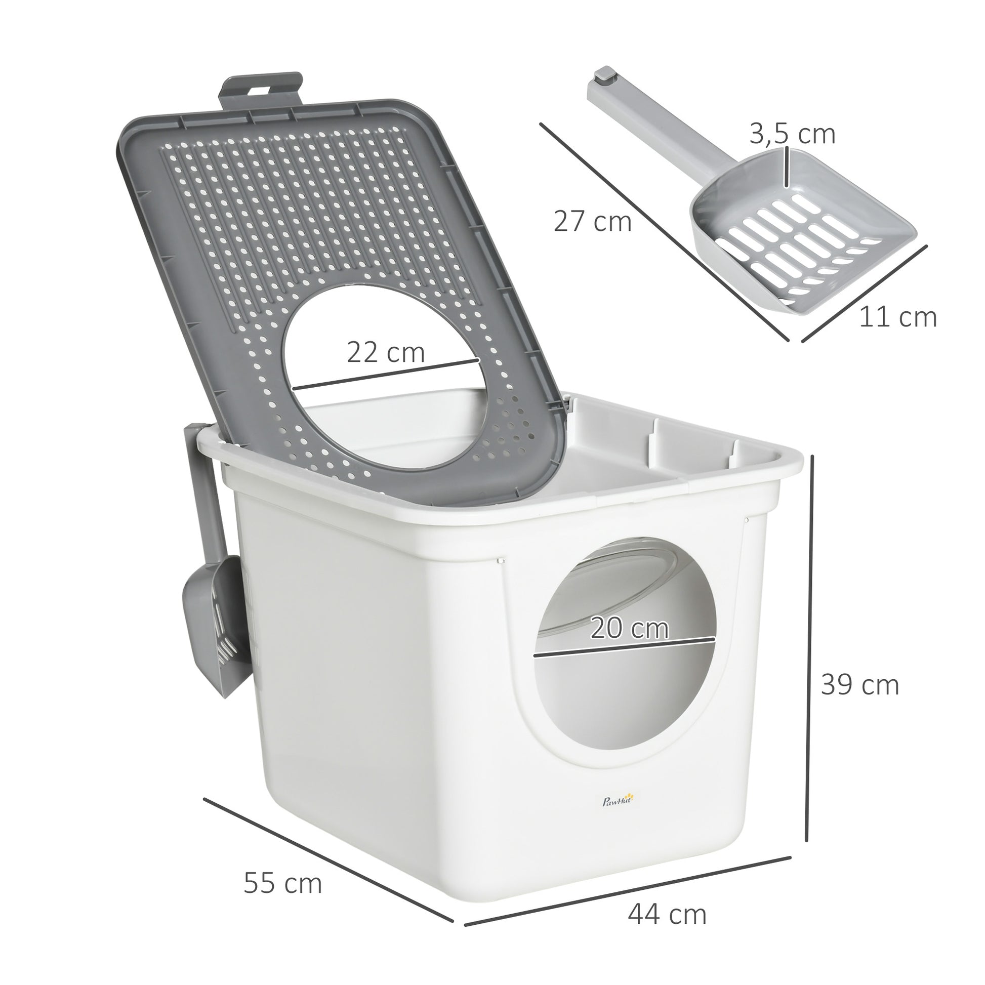 Caixa de Areia Coberta para Gatos – 44x55x39 cm – Branco – Plástico
