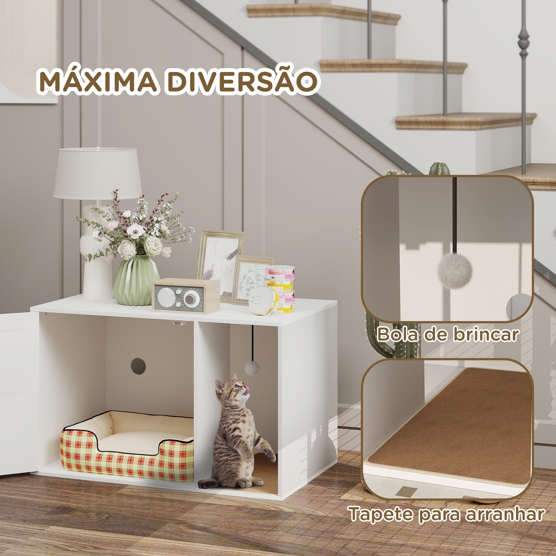 Móvel Caixa de Areia para Gatos – 80x50x50 cm – Branco – Melamina de madeira
