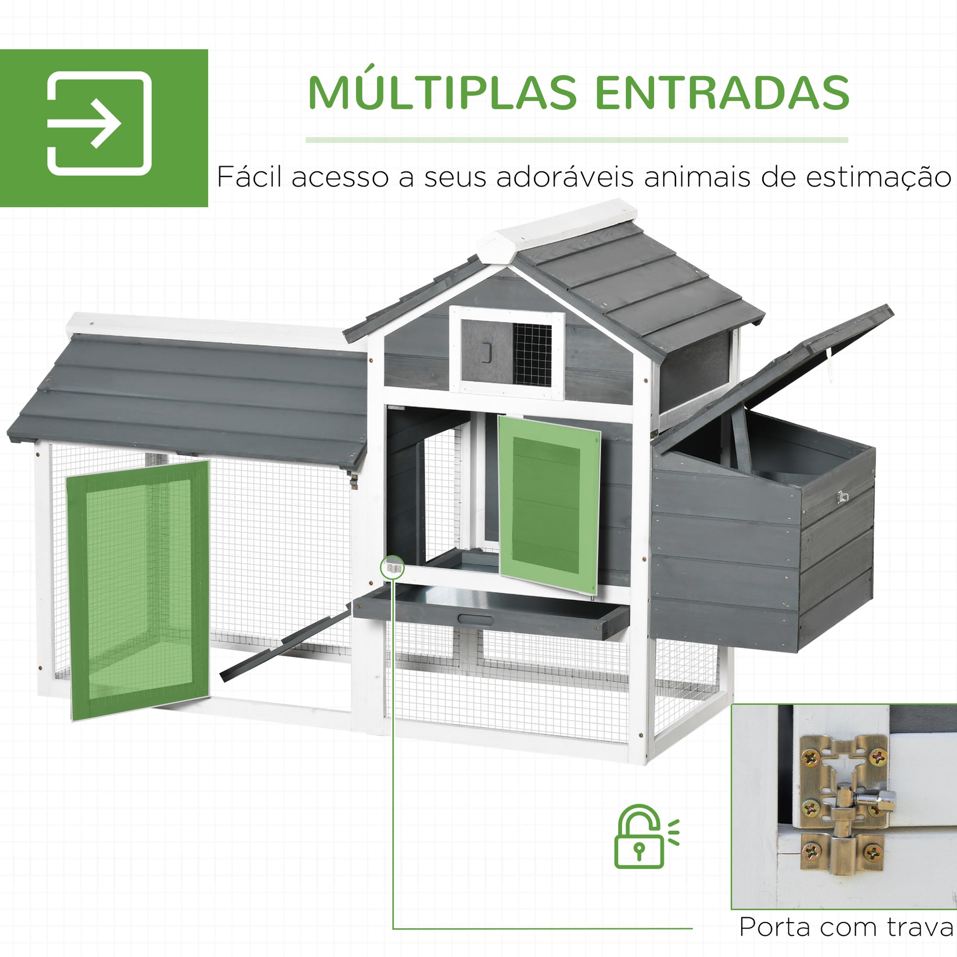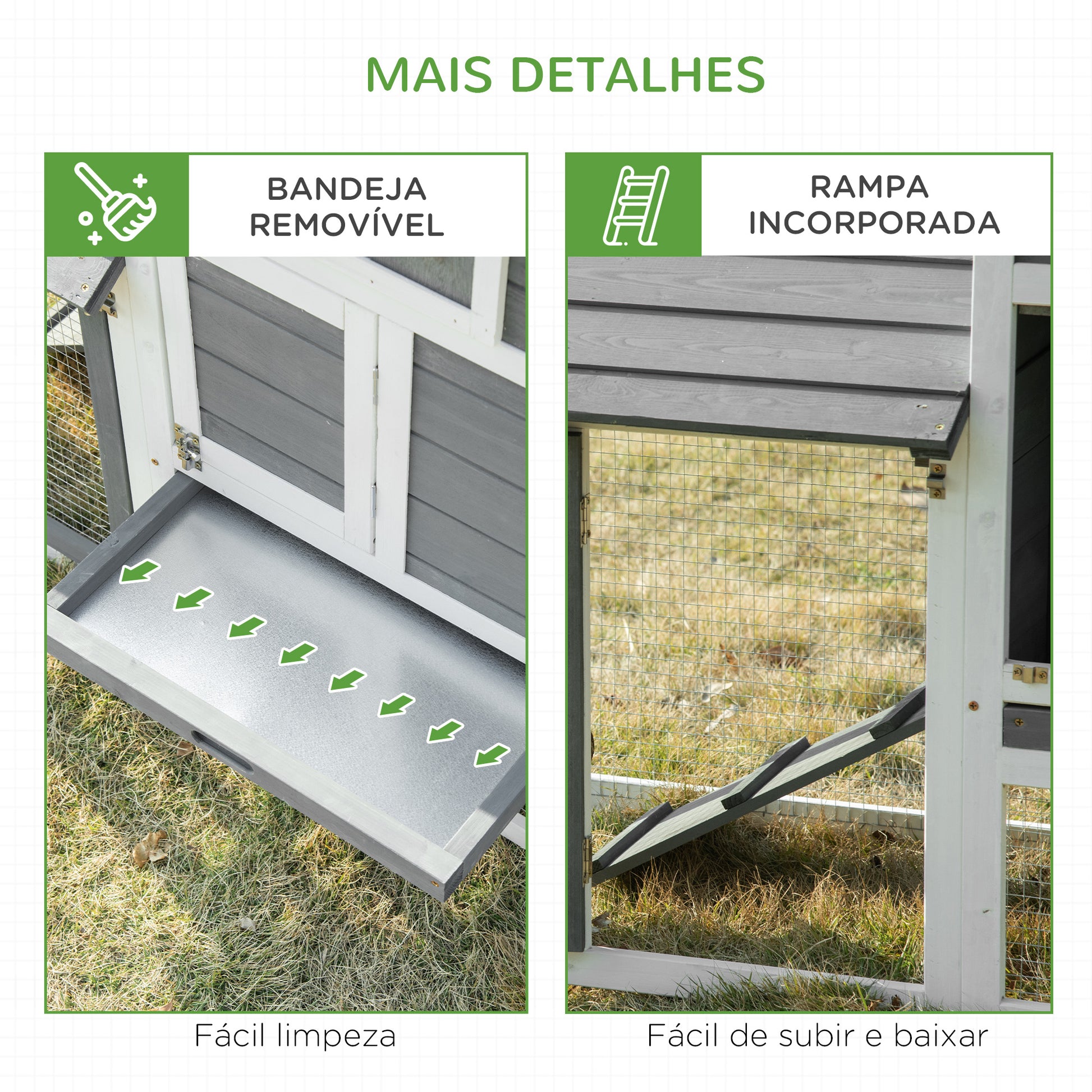 - Outras especificações: Requer montagem. Inclui galinheiro e manual de instruções