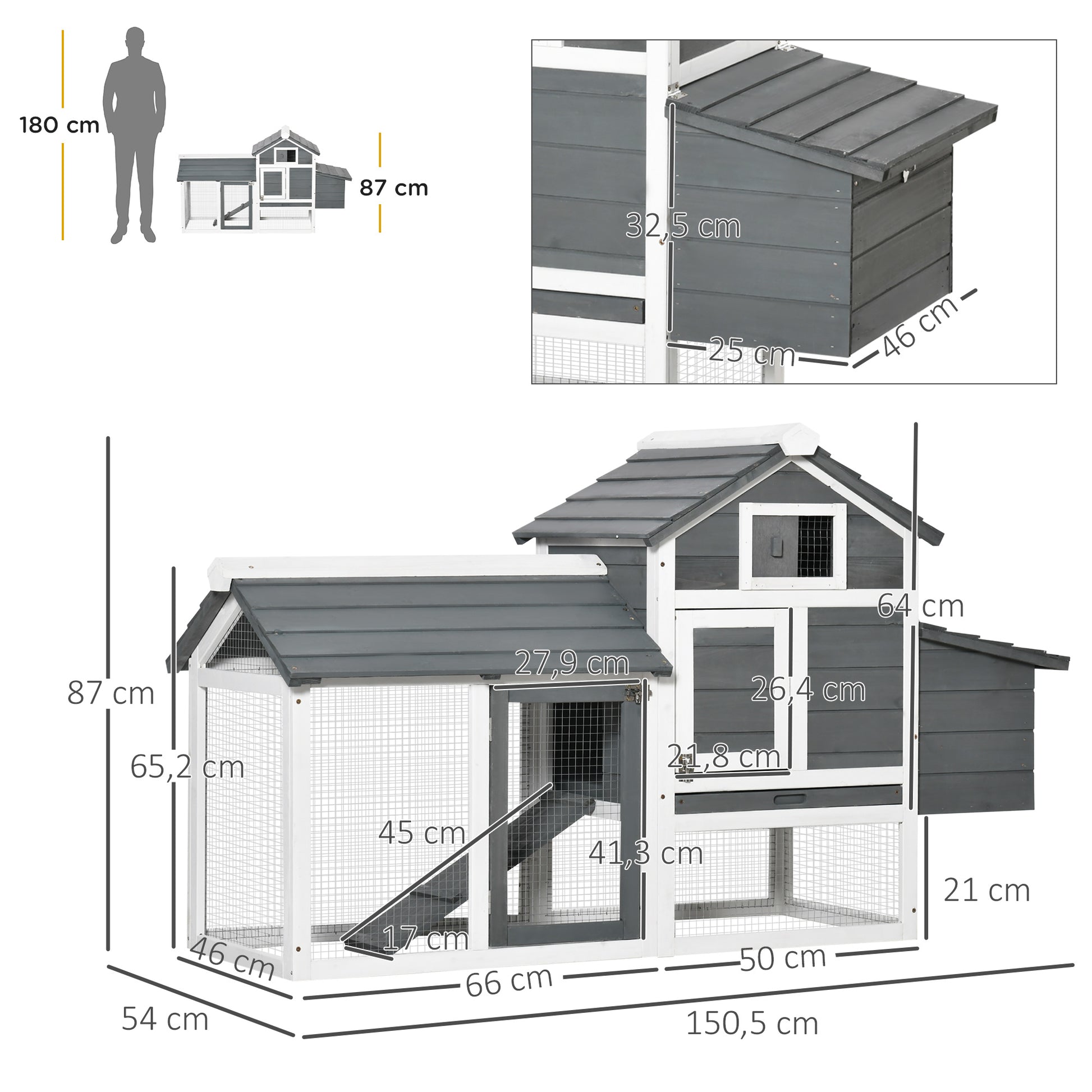 Galinheiro de Madeira para 2-3 Galinhas – 150,5x54x87 cm – Cinza e Branco – Madeira