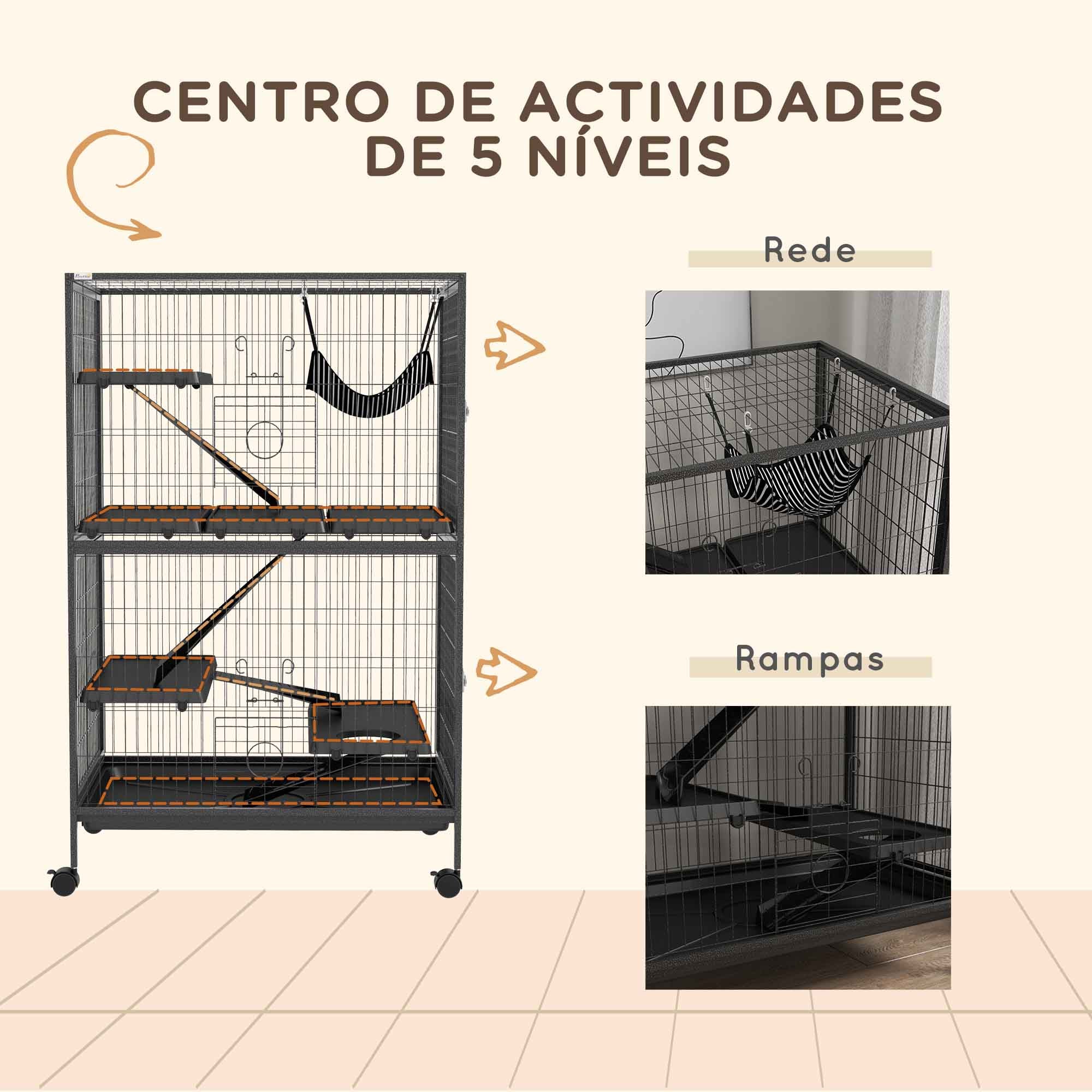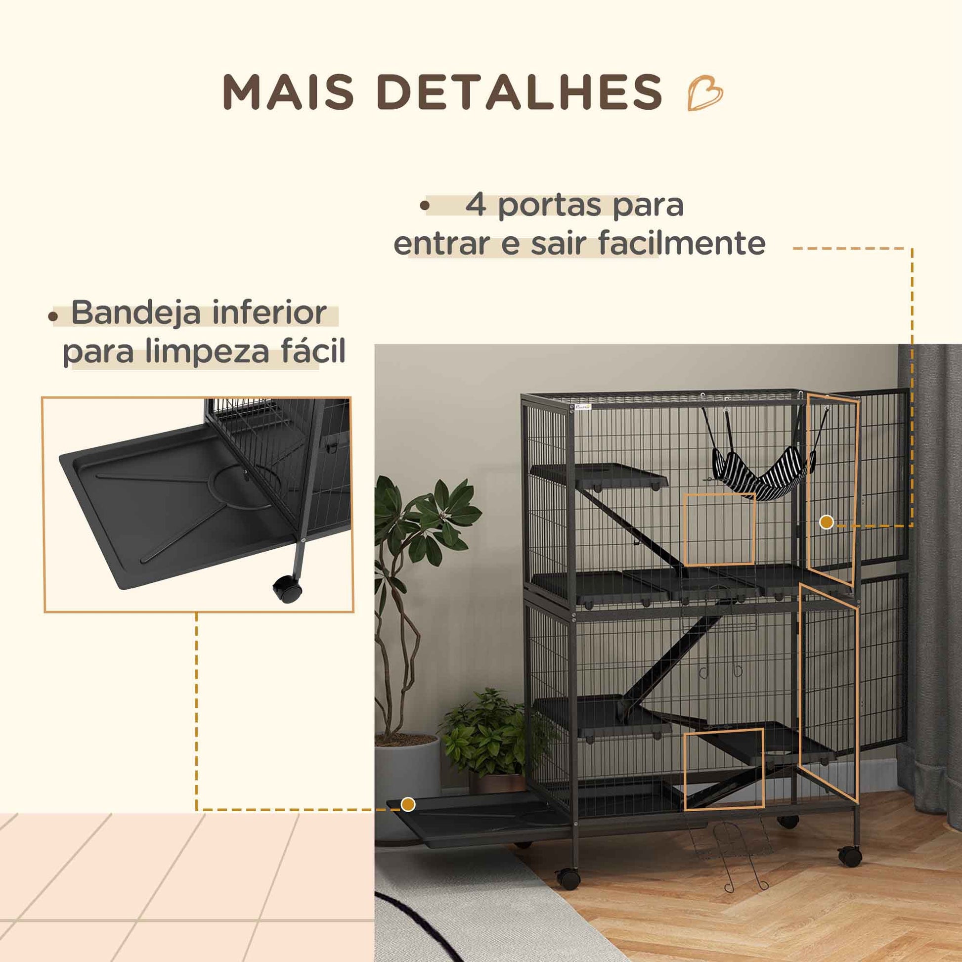 A Gaiola para Roedores é o habitat perfeito para os seus animais de estimação, com medidas de 80x52x128 cm e cor cinza escuro.