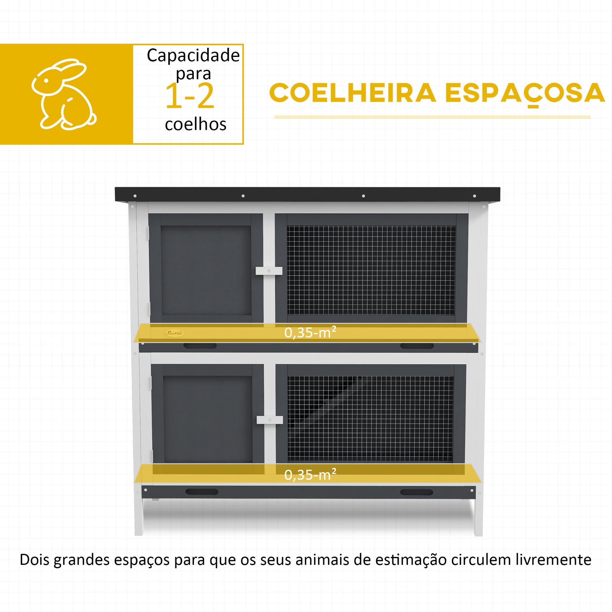 Gaiola para Coelhos de 2 Pisos – 97x44x91 cm – Cinzento – Madeira e Metal
