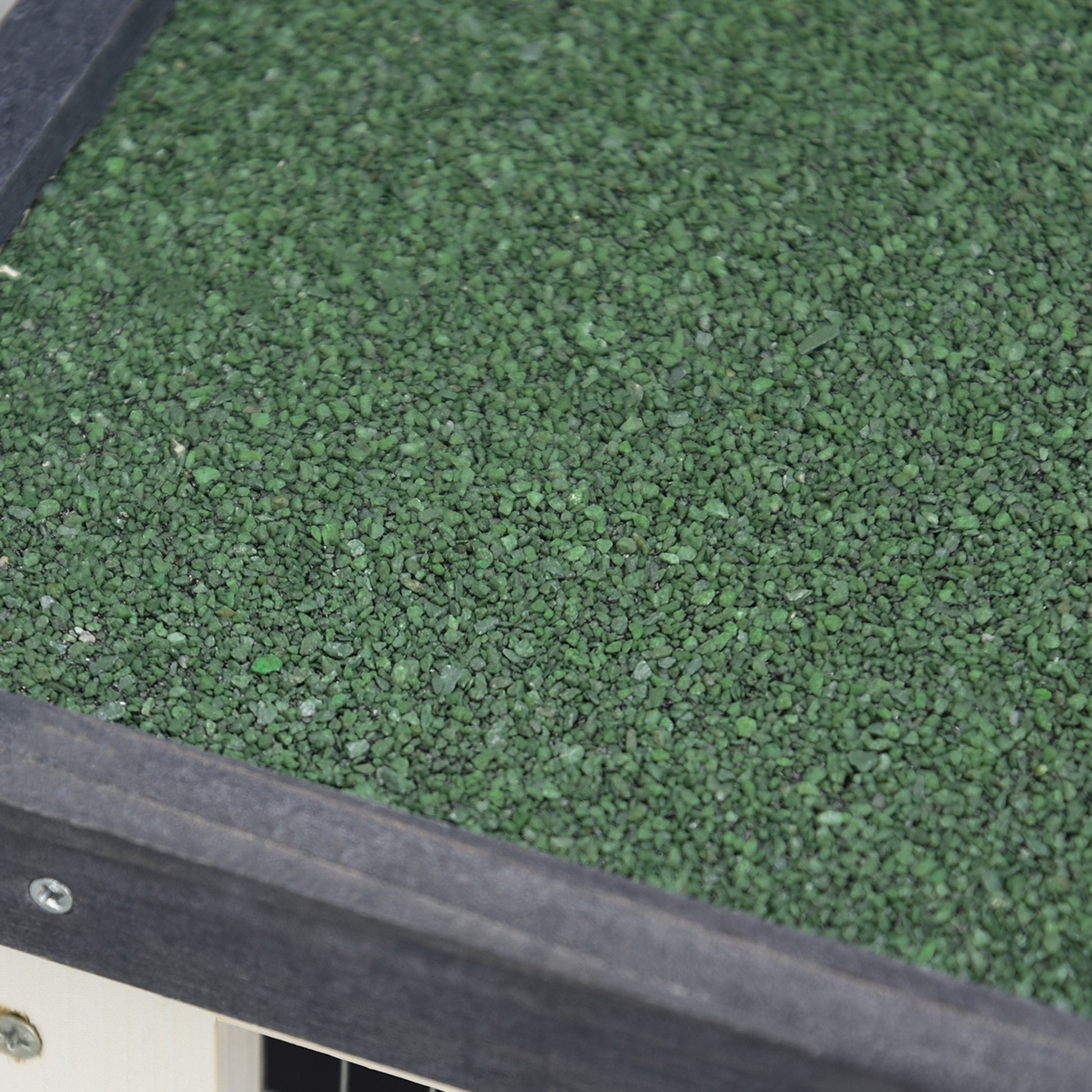 - Materiais: Fabricada em madeira de abeto resistente, com pintura à base de água e teto asfáltico.