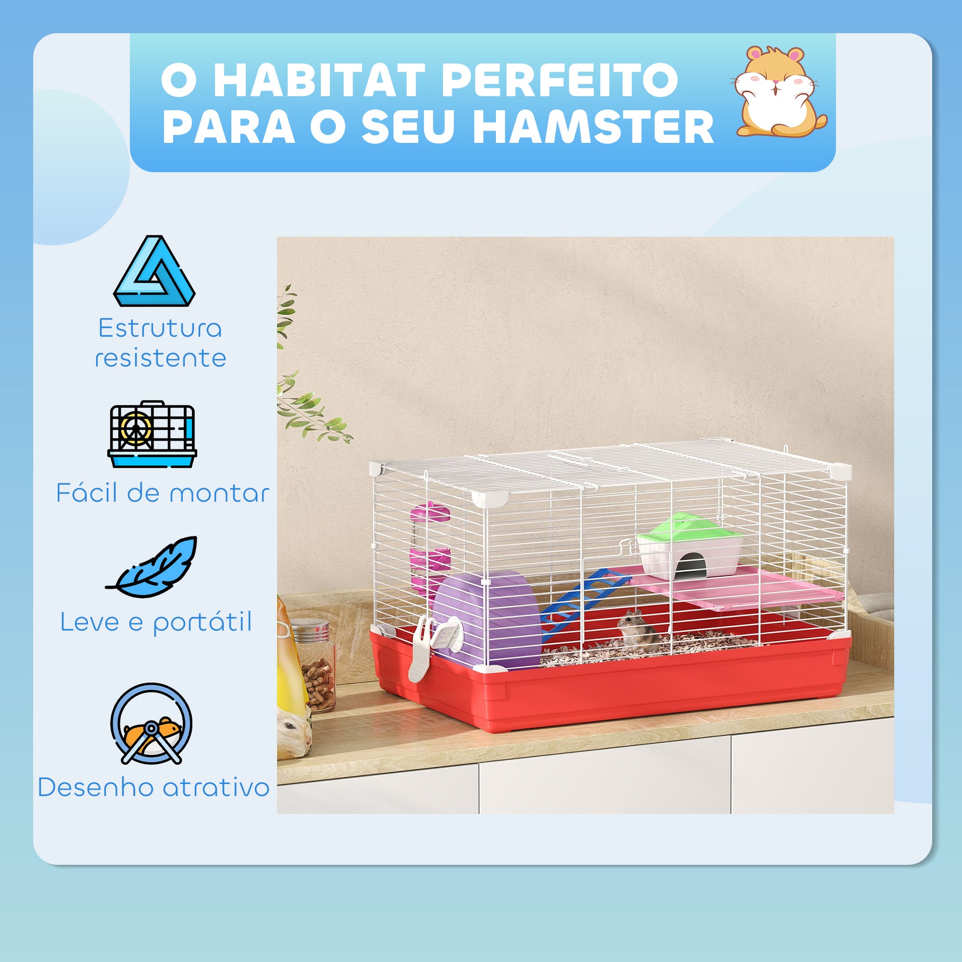 Proporcione um ambiente confortável e divertido para o seu hamster com esta gaiola completa e cheia de acessórios.
