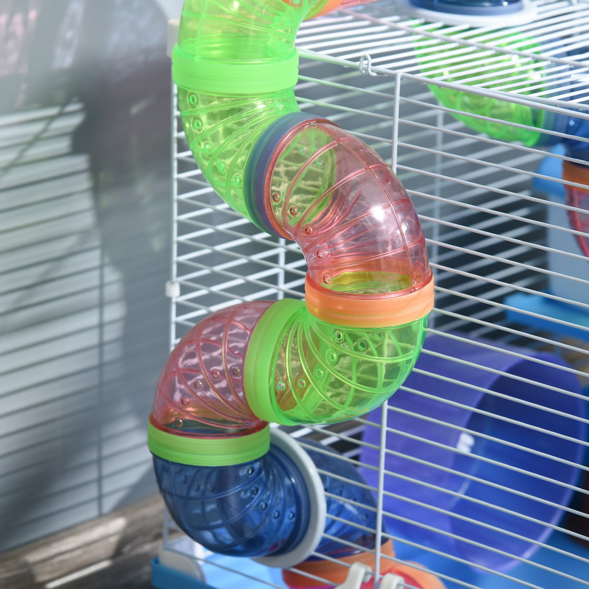 A gaiola vem completa com casa para dormir, bebedouro, comedouro, roda de exercícios, tubos e rampa. Proporciona um ambiente seguro e confortável para o seu animal de estimação explorar e se divertir. Não perca a oportunidade de garantir o bem-estar do seu pequeno roedor!