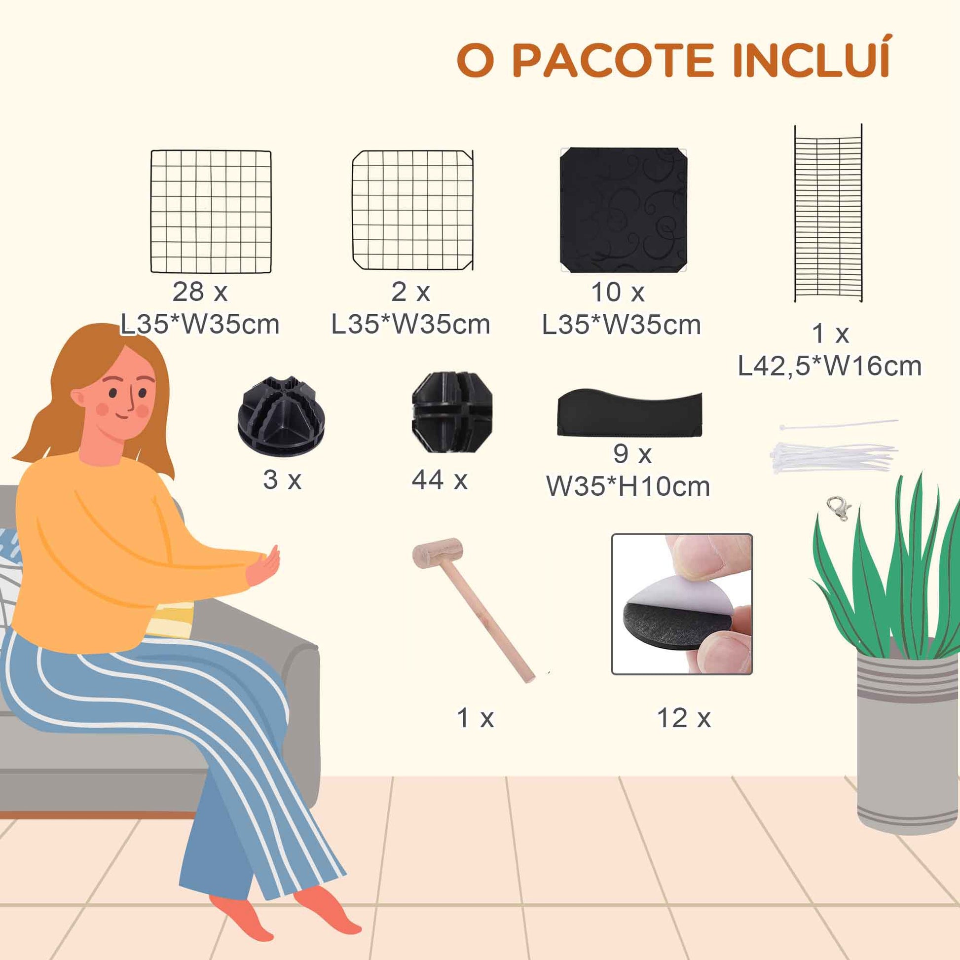 - Benefícios: Desenho modular para personalização, estrutura resistente e durável, três portas para fácil acesso, almofadas antiderrapantes para estabilidade