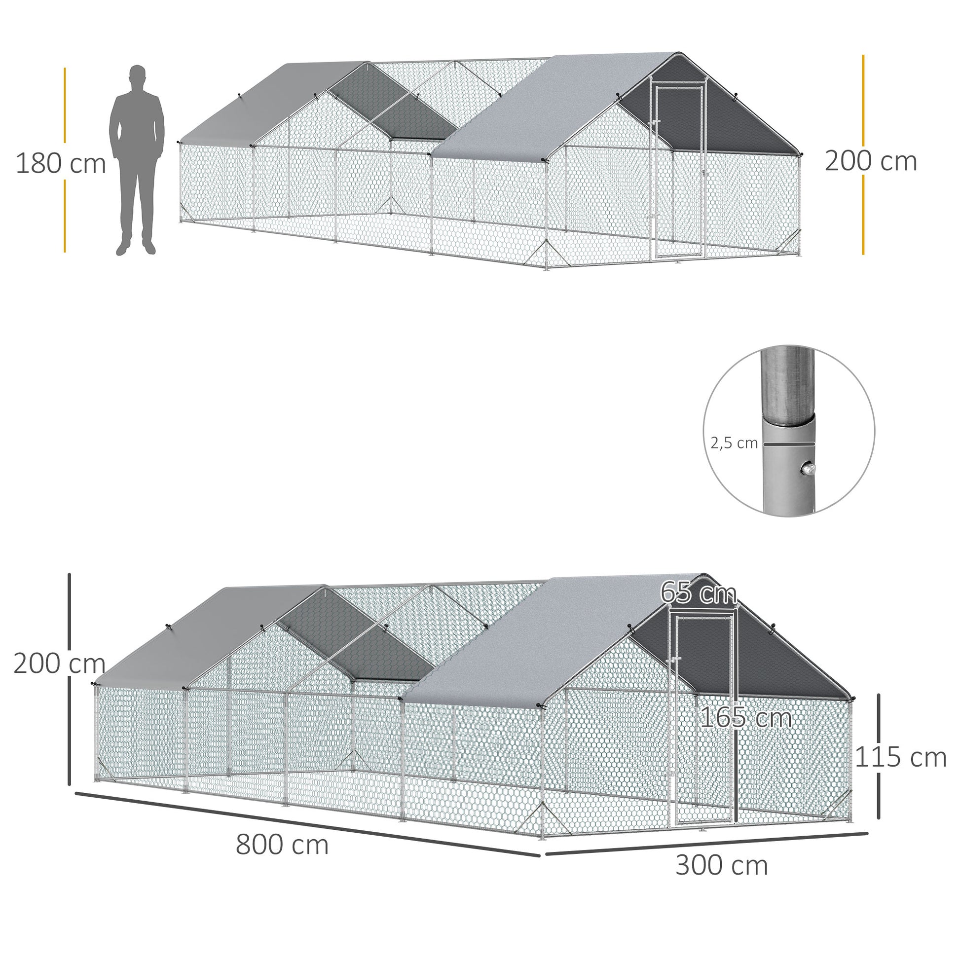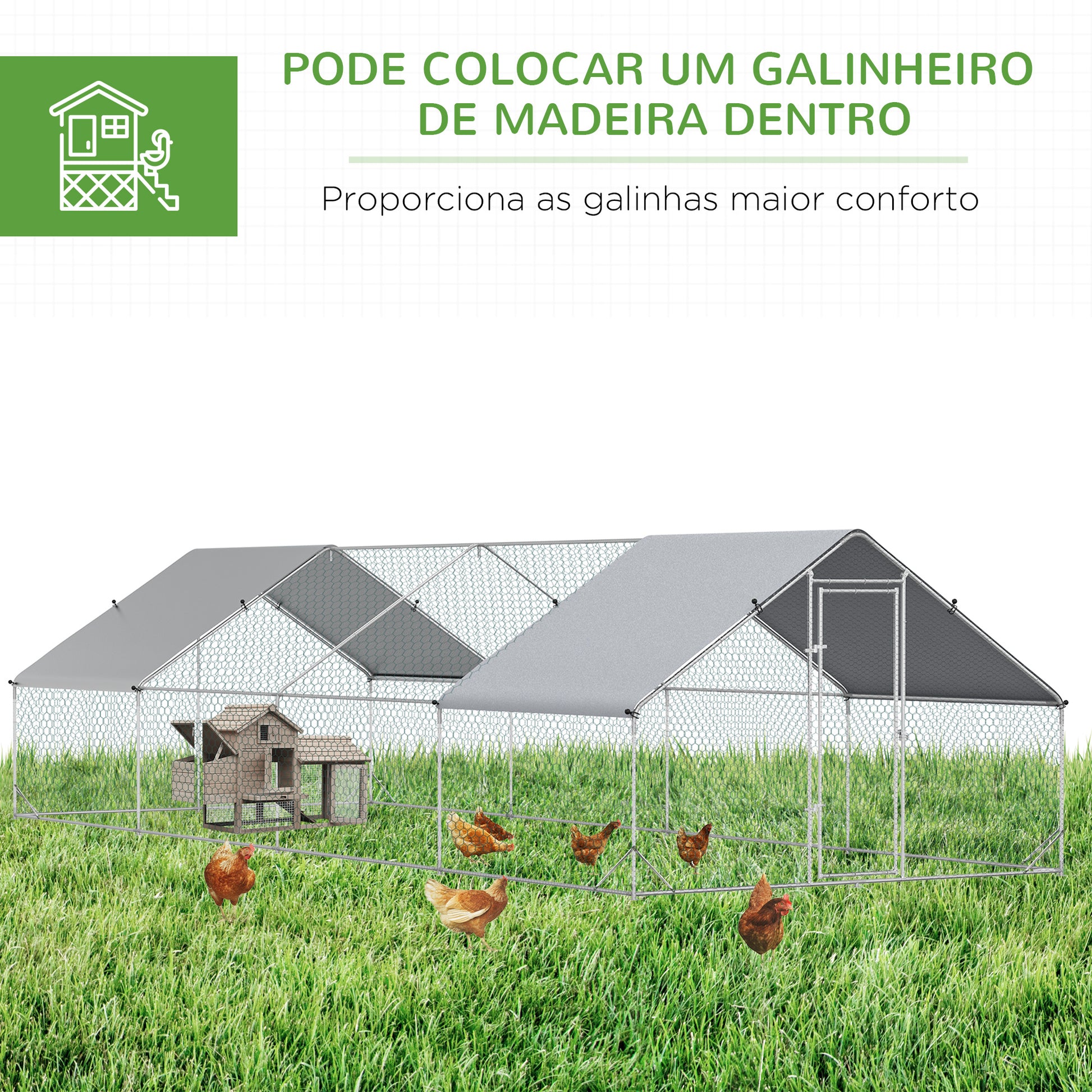 Galinheiro Exterior Grande – 300x800x200cm – Prata – Metal