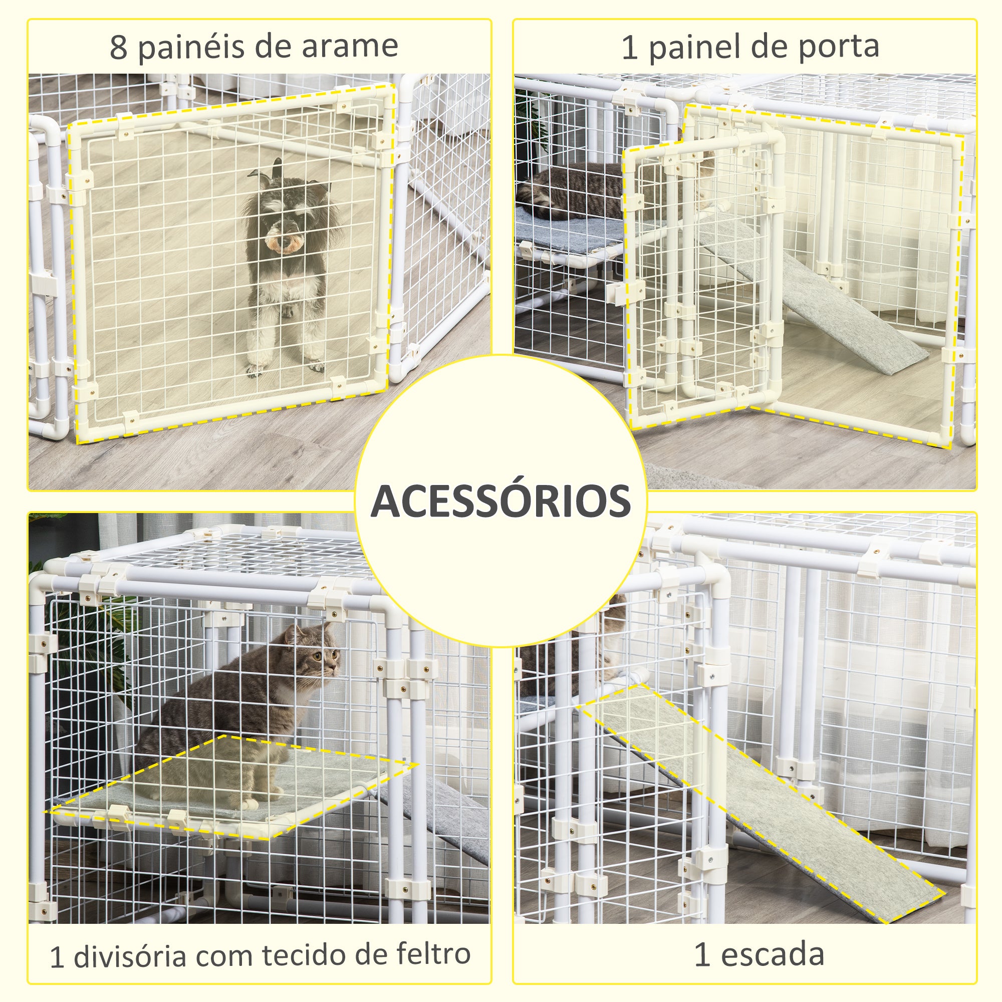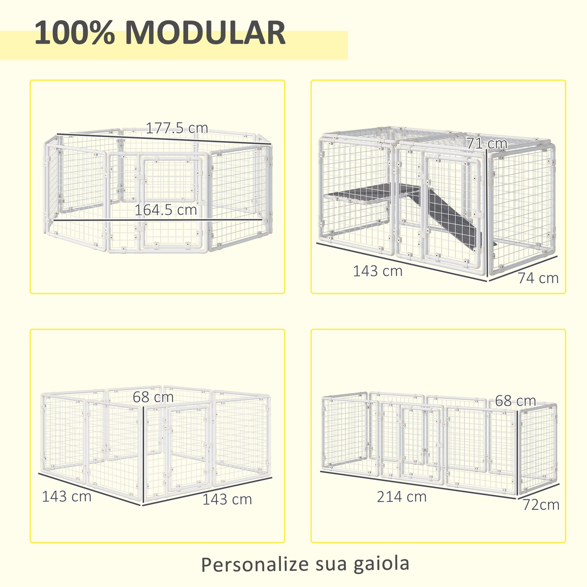 O recinto é uma solução prática da PawHut para manter os seus animais de estimação seguros, confortáveis e entretidos. Adapte-o ao seu espaço e às necessidades dos seus amiguinhos peludos!