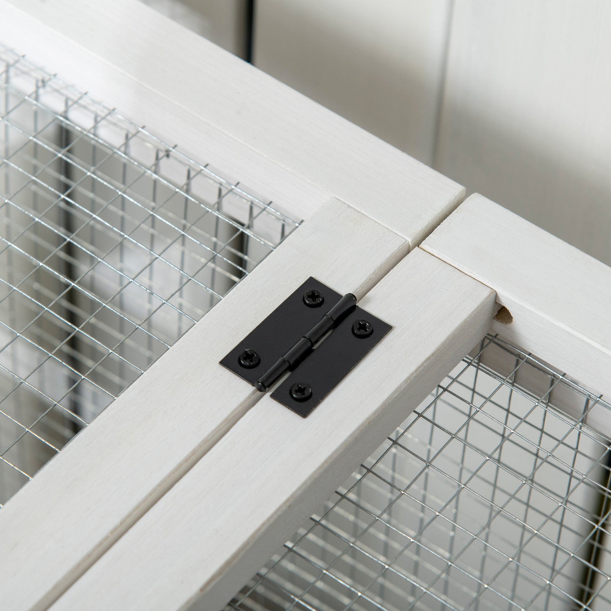 Esta coelheira de madeira cinzenta é espaçosa e móvel, ideal para 1-2 coelhos.