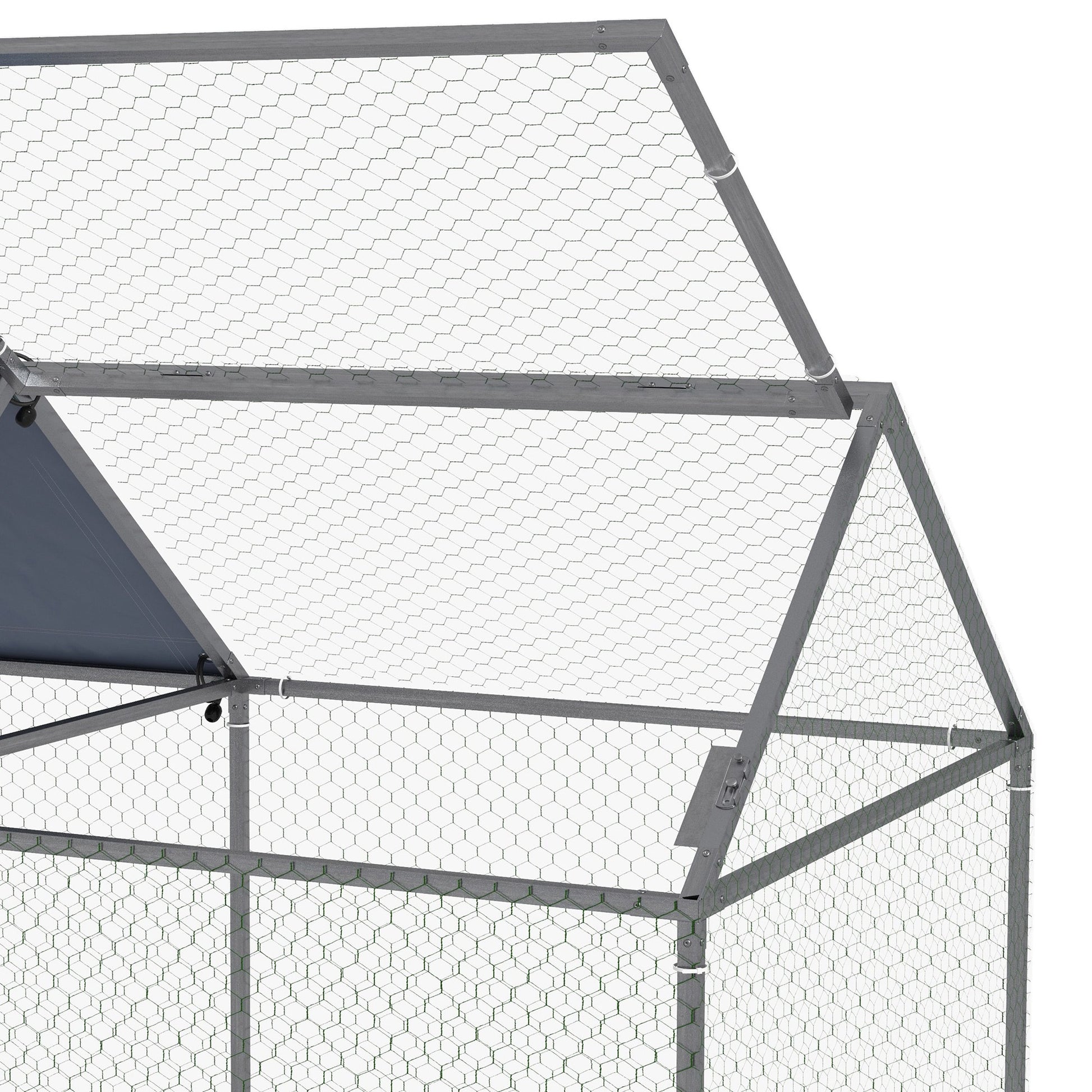- Benefícios: Cobertura anti-UV para sombra e proteção, porta superior com fechadura para fácil acesso, estacas de solo para estabilidade, estrutura robusta e segura