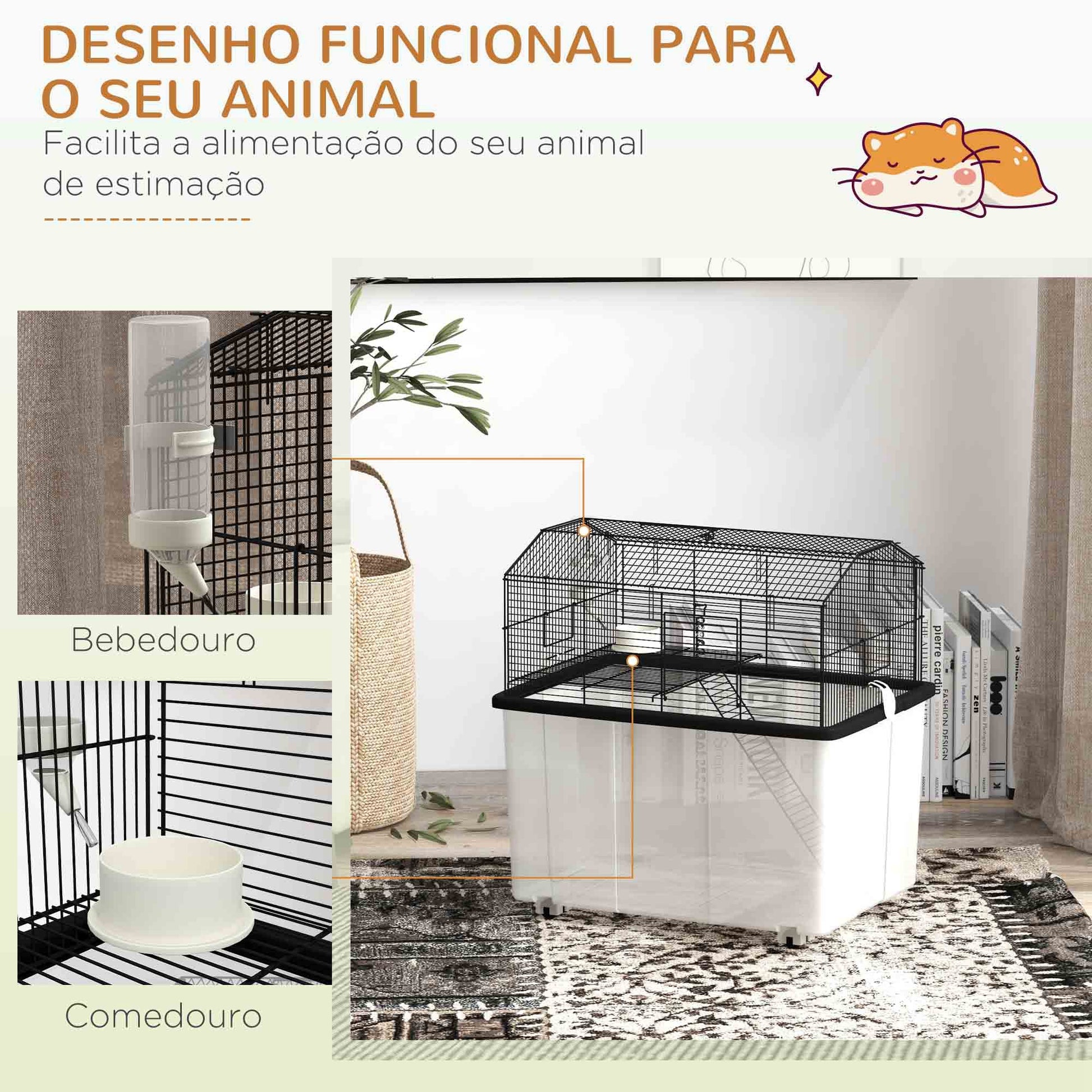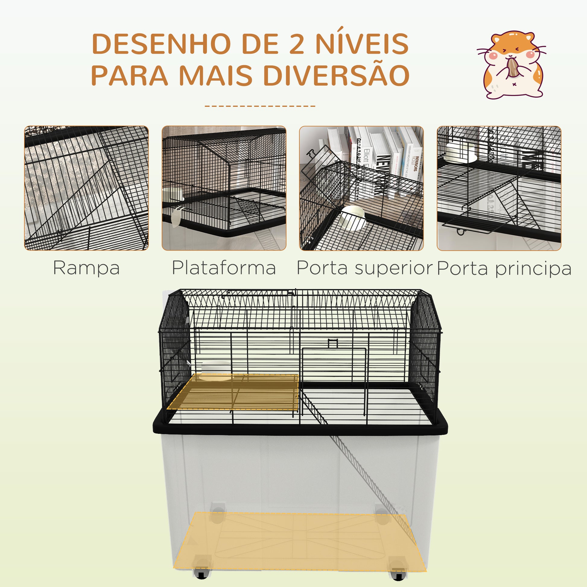 Proporcione um ambiente completo para o seu pequeno roedor com esta gaiola de alta qualidade. Inclui uma plataforma com rampa, comedouro e bebedouro para garantir o bem-estar do seu animal de estimação.