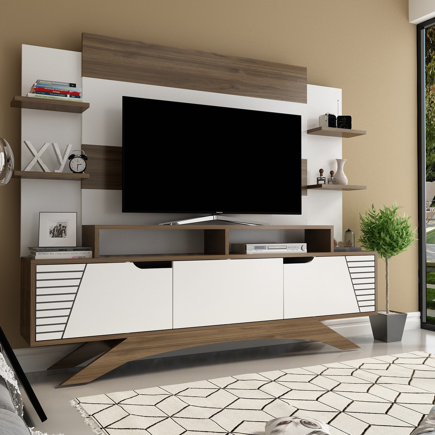 Móvel de TV moderno – 180 cm x 148,6 cm x 29,5 cm – nogueira e branco – melamina