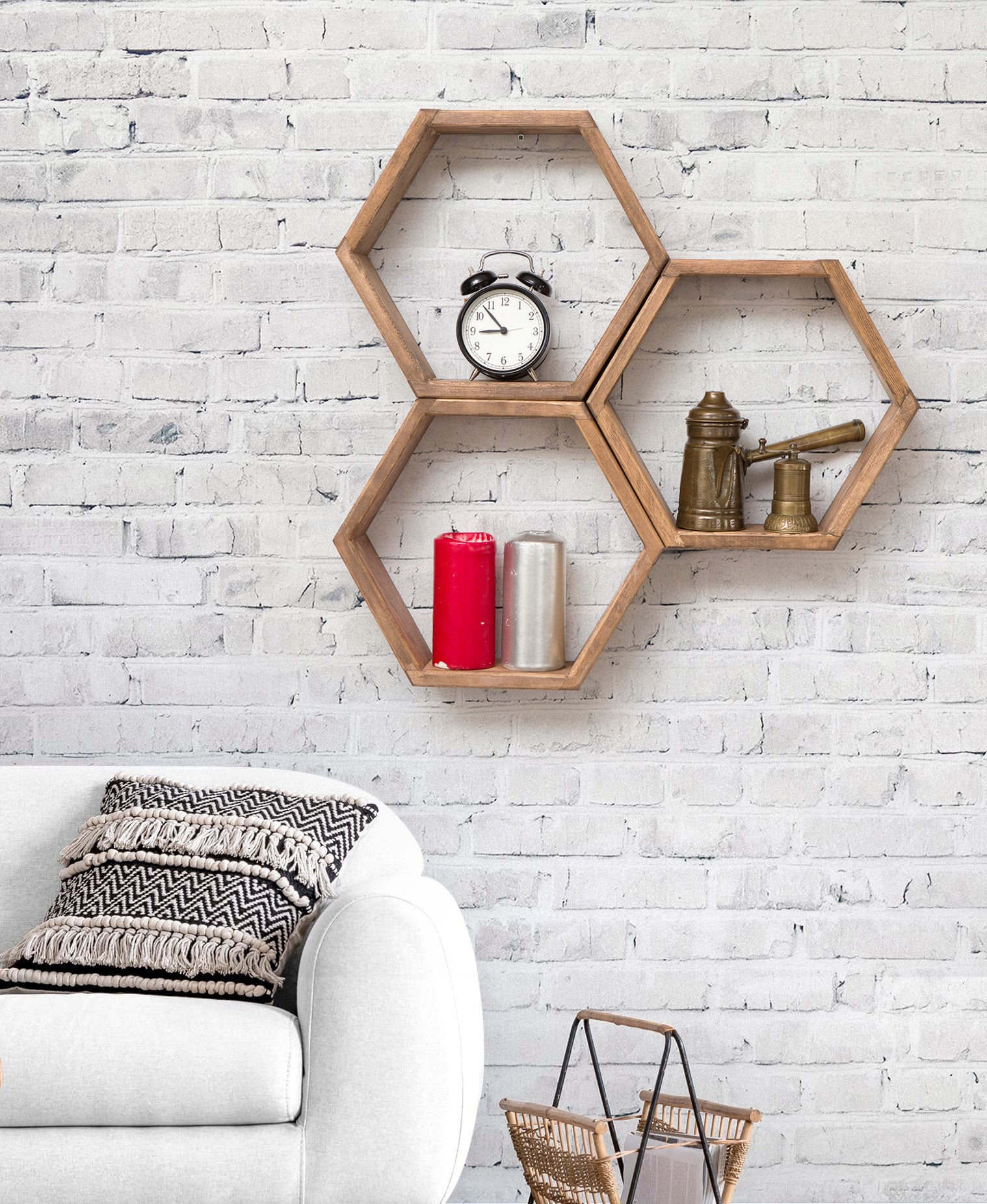 Prateleira de parede moderna em nogueira – 61 x 58 x 9 cm – nougueira – madeira