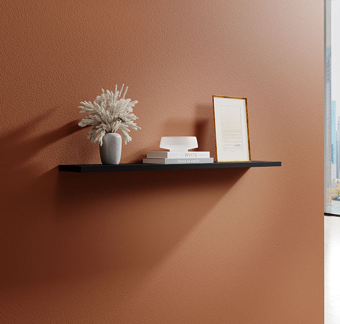 Estante flutuante de alta qualidade, perfeito para exibir objetos de coleção, livros ou plantas pequenas. Fácil de instalar, com acabamento em melamina mate.