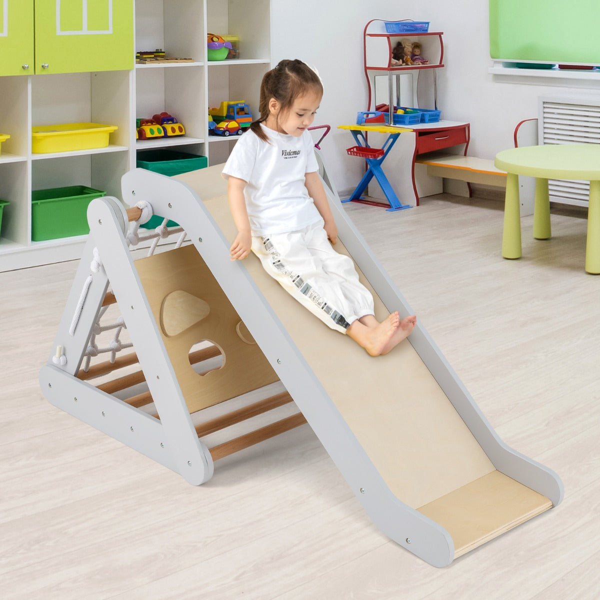 Escalador Triangular com Escorrega para Crianças – Madeira – Cinzento