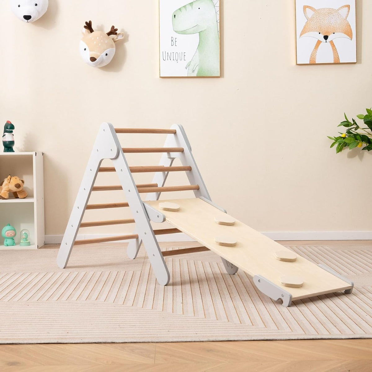 - Fácil de Montar: Com um manual de utilizador claro e todos os acessórios incluídos, os pais podem montar rapidamente todas as peças deste escalador triangular de madeira.