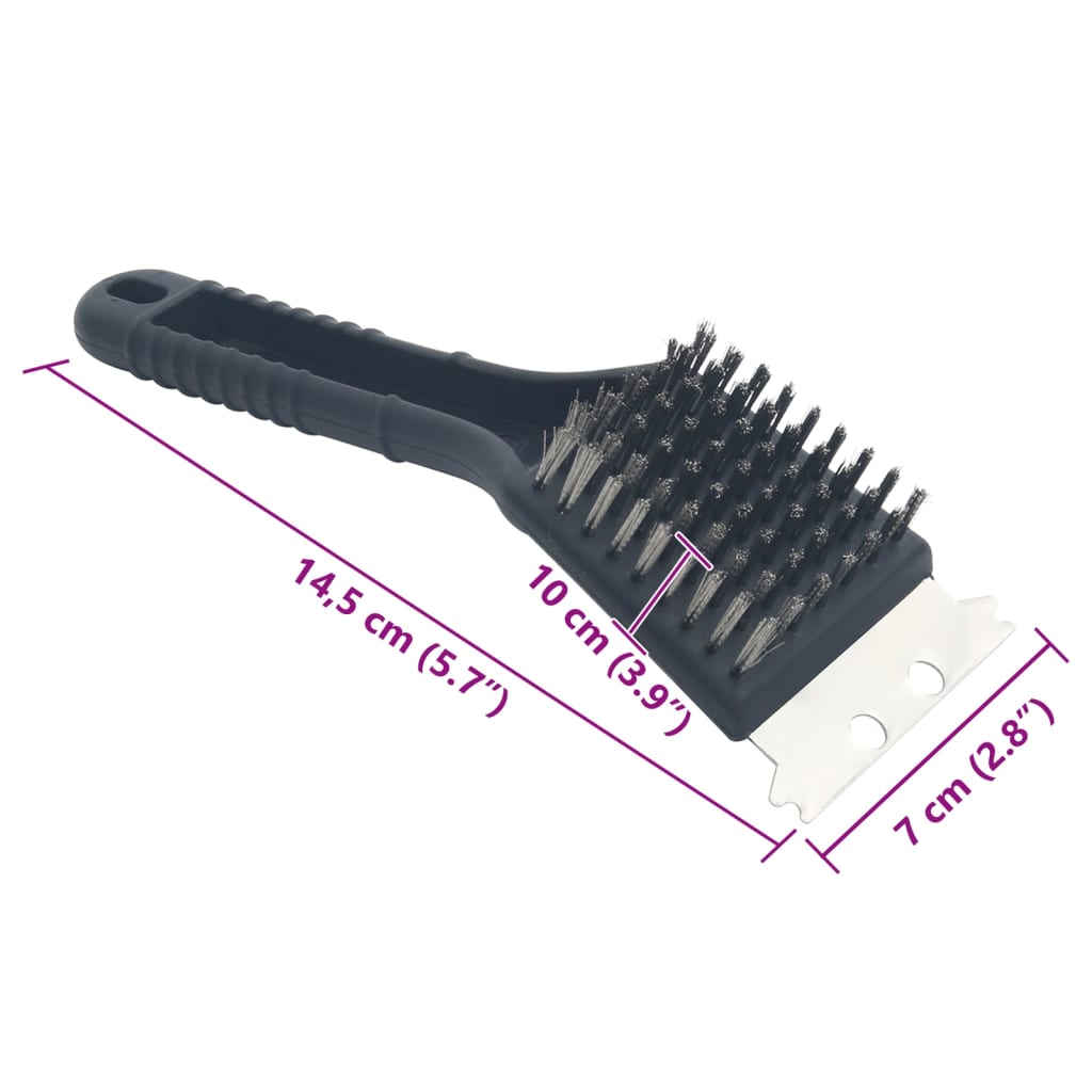Com a nossa escova para churrasqueira de uso fácil e com raspador integrado, pode limpar facilmente a sua churrasqueira para deixá-la a brilhar e com aspeto de nova. As cerdas das escovas são feitas de fio de cobre, que limpa a grade de maneira eficaz sem danificá-la. O raspador de grade integrado, feito de aço inoxidável de qualidade, eliminará os resíduos mais difíceis da grade. Graças ao cabo de plástico, as suas mãos estarão protegidas do calor gerado pela churrasqueira. Esta escova de limpeza é adequada para todas as churrasqueiras a carvão e a gás.