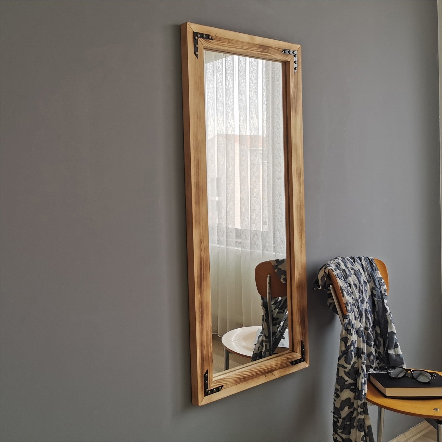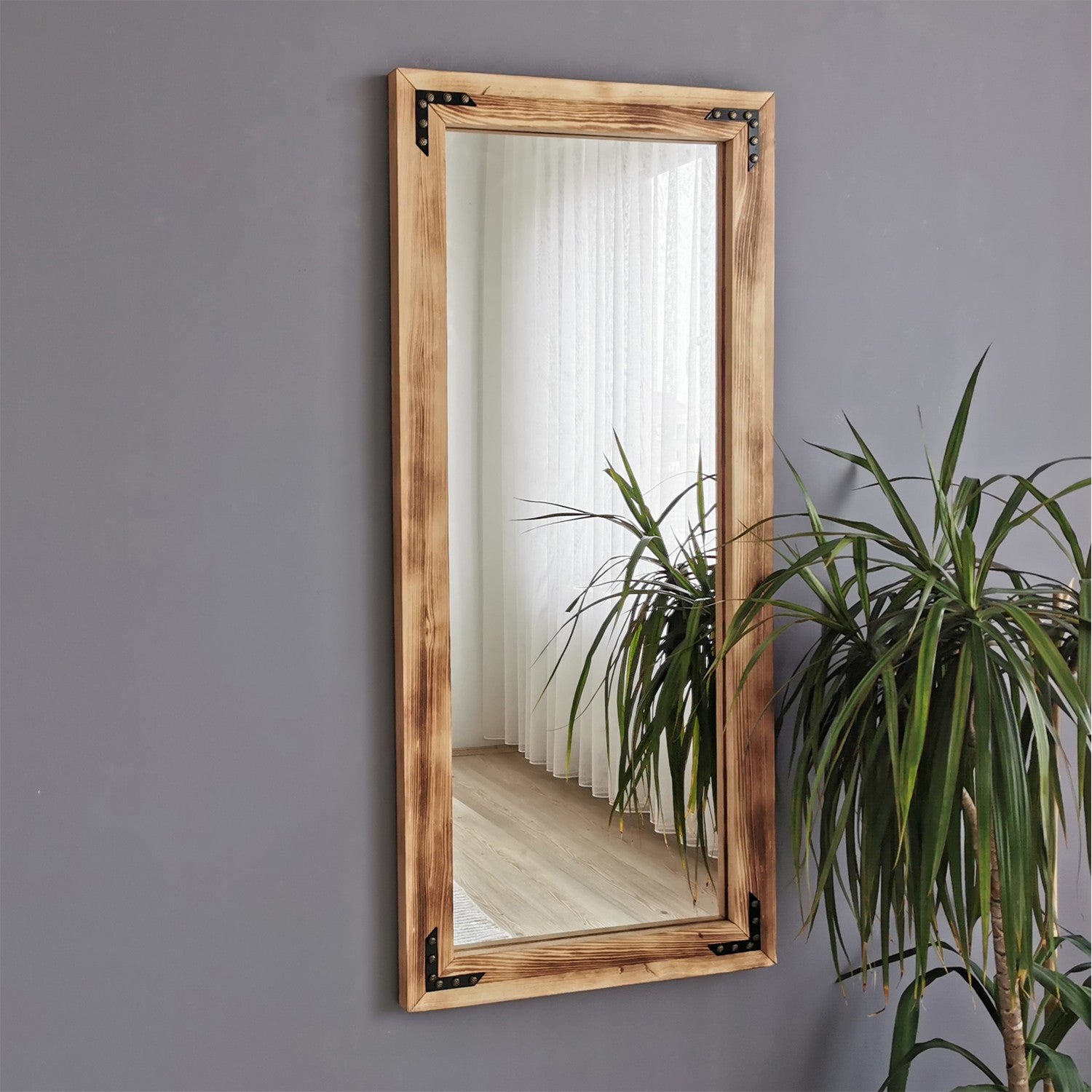 Espelho de parede elegante em carvalho, 50 cm x 110 cm | 100% madeira maciça de pinho, ajustável e montado | Perfeito para decoração boêmia, rústica e campestre