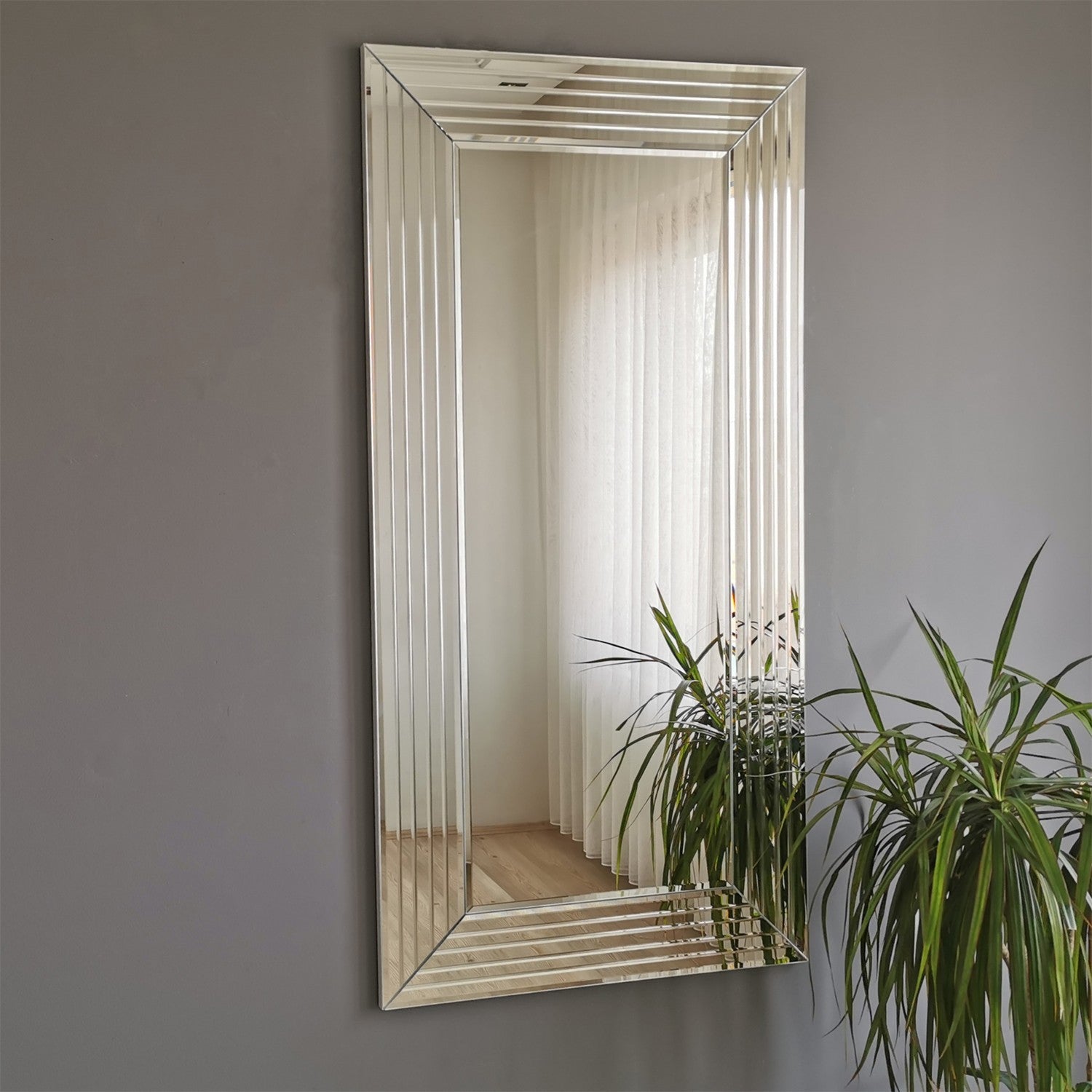 Espelho de parede moderno prateado, 60 x 100 cm, 100% MDF, ajustável horizontal e verticalmente, montado, perfeito para hotéis e espaços contemporâneos