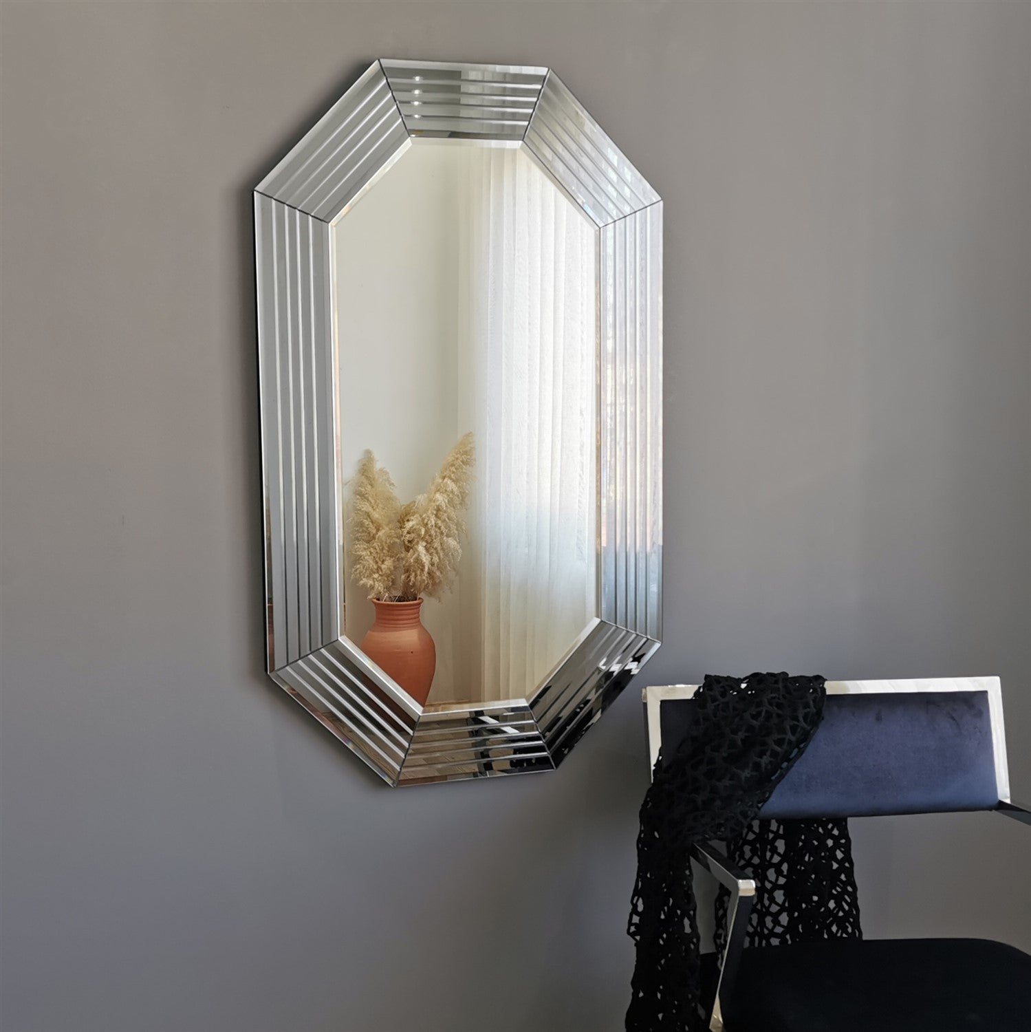Espelho de parede prateado elegante, 60 x 100 cm | 100% MDF, ajustável horizontal e verticalmente | Perfeito para decoração de hotéis e residências modernas, montado