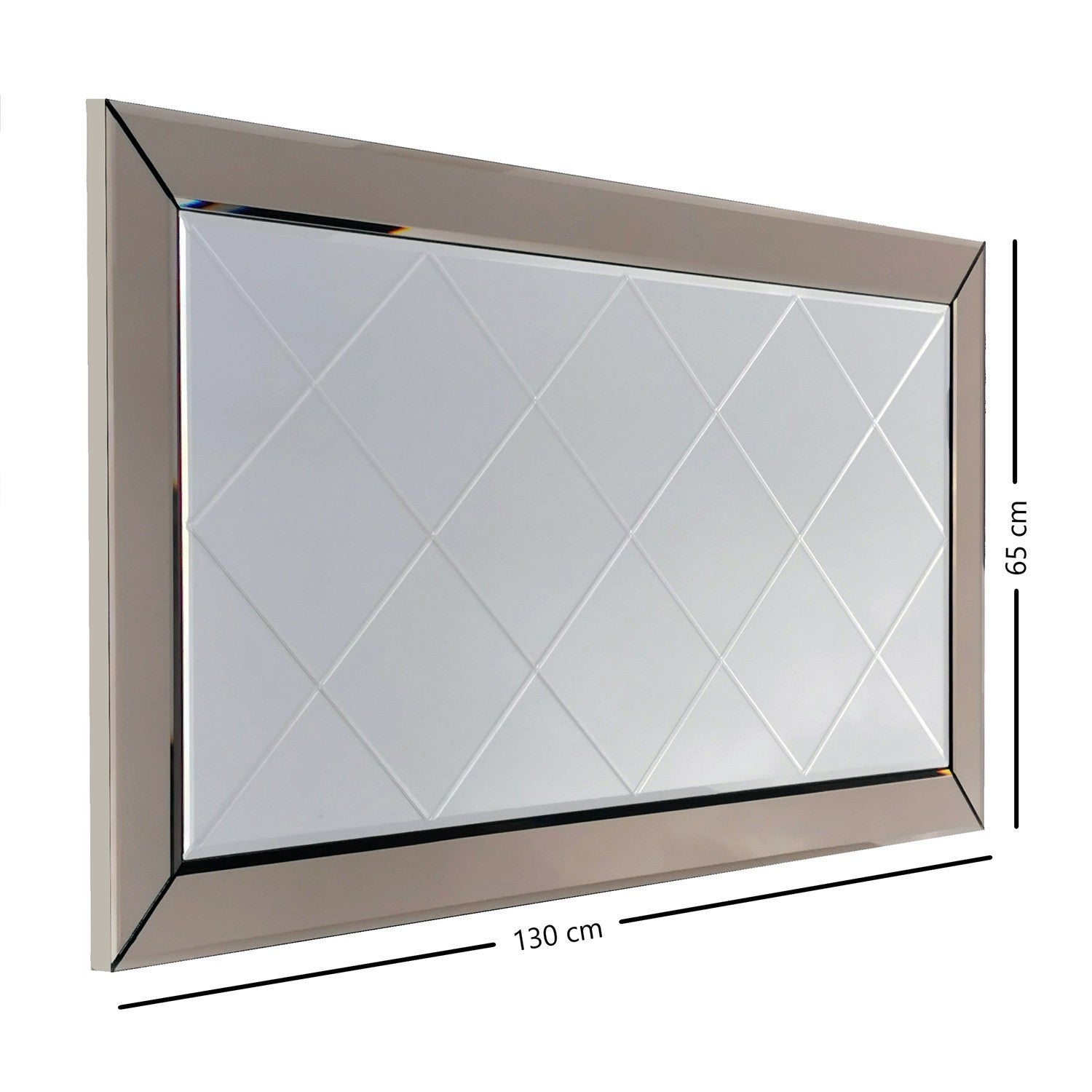 Espelho de parede prateado elegante, 130 x 65 x 2,2 cm | 100% MDF, montado, design inspirado em hotéis | Perfeito para decoração moderna de casas e entradas