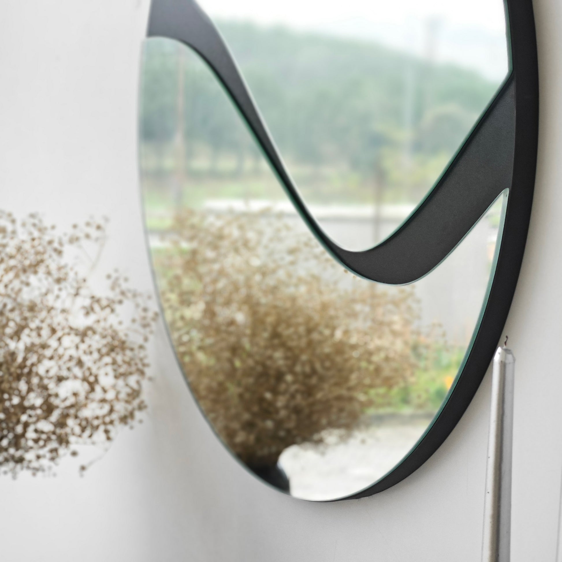 Com uma largura de 70 cm e uma altura de 70 cm, este espelho tem o tamanho ideal para ser pendurado em qualquer parede. A cor preta dá-lhe um toque arrojado e dramático, tornando-o numa peça de referência em qualquer espaço. Quer o coloque no seu quarto, na sala de estar ou no corredor, este espelho reflectirá o seu estilo e personalidade únicos.