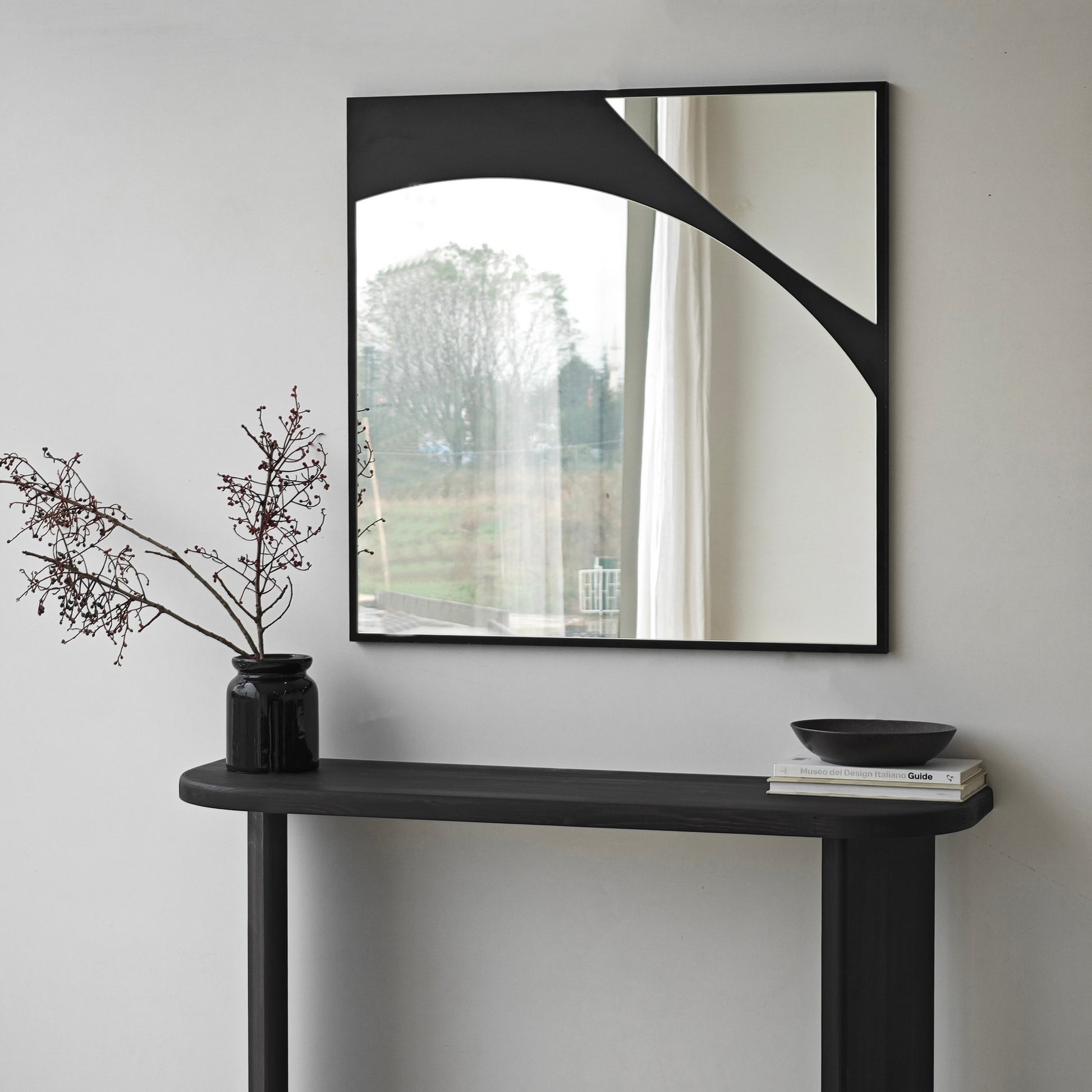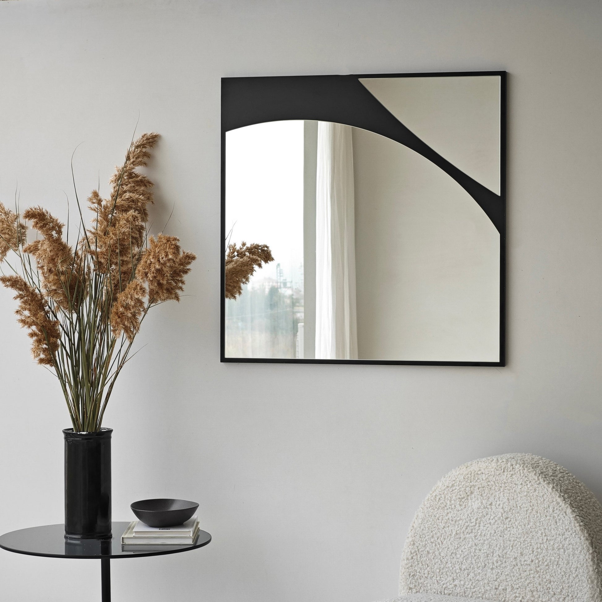 Espelho elegante de parede preto, 70 x 70 cm | Painel de partículas 100% revestido em melamina, cintas de PVC | Design ajustável e ecológico para espaços modernos