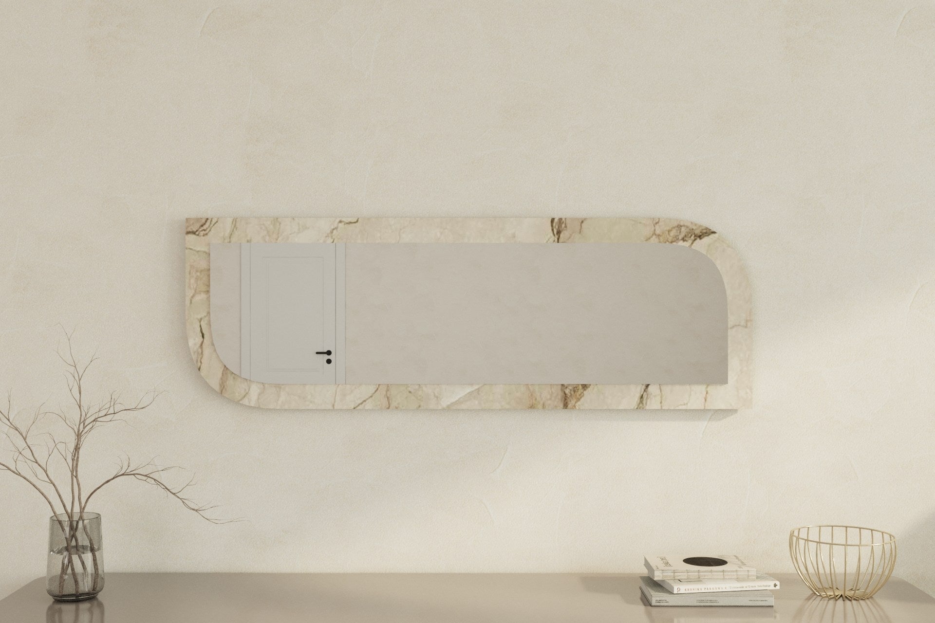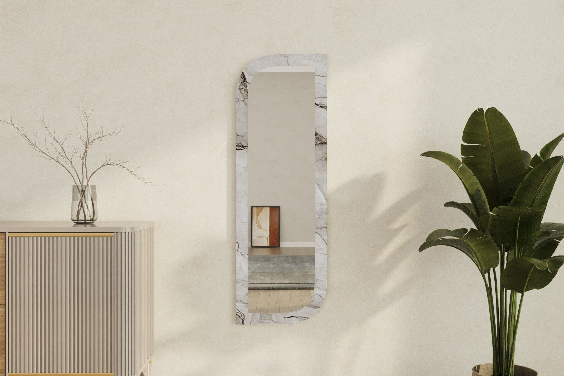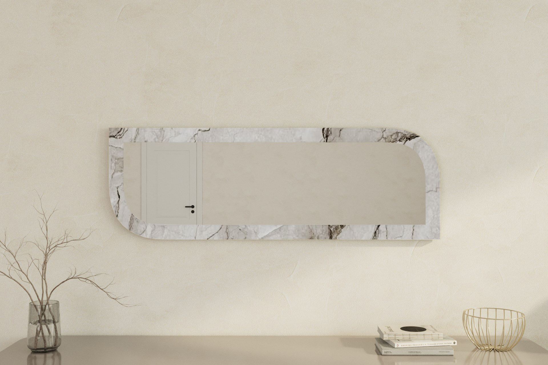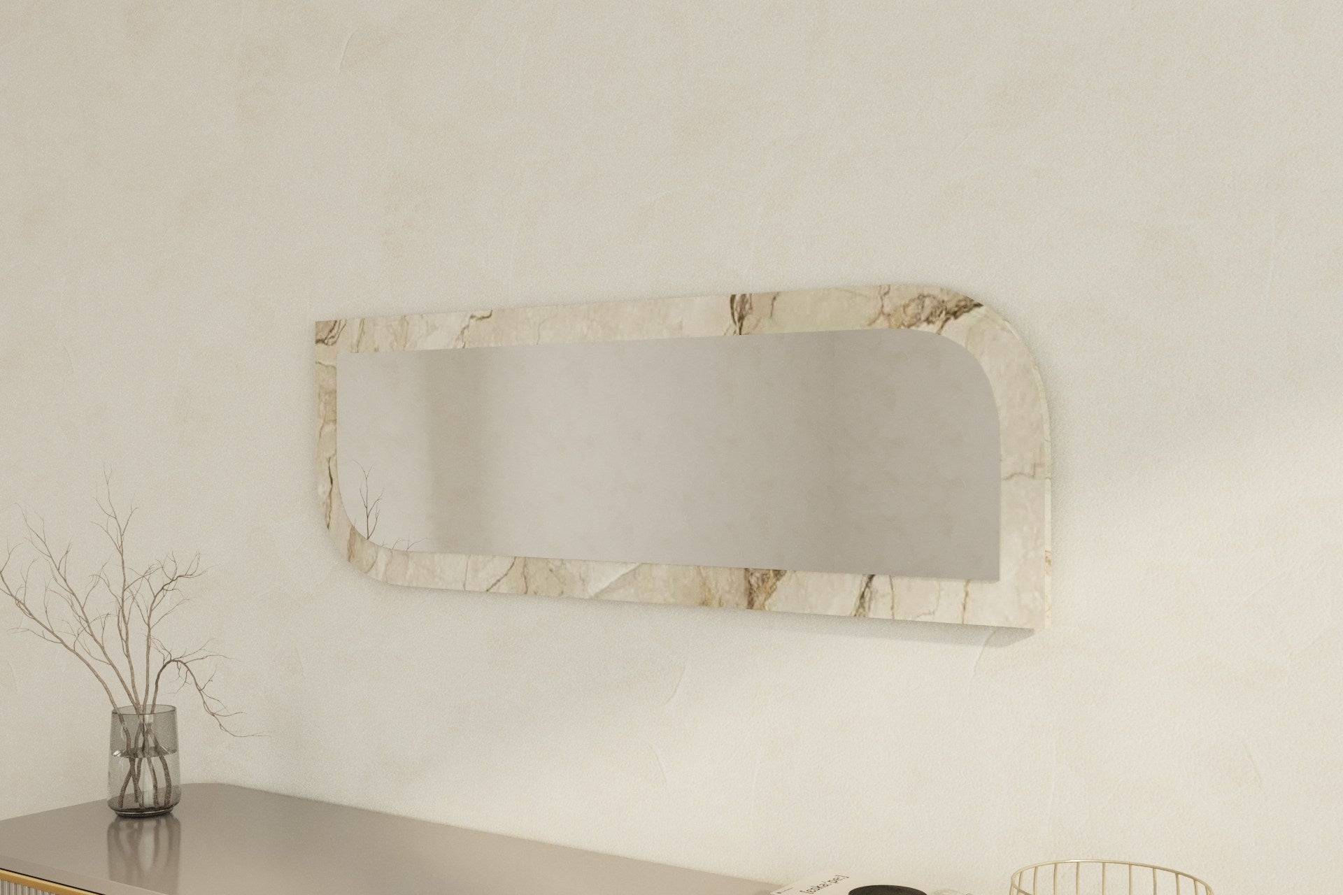 Espelho de parede elegante, 40 x 120 cm, MDF ecológico, acabamento em mármore e Éfeso | Elegante e funcional para decoração moderna