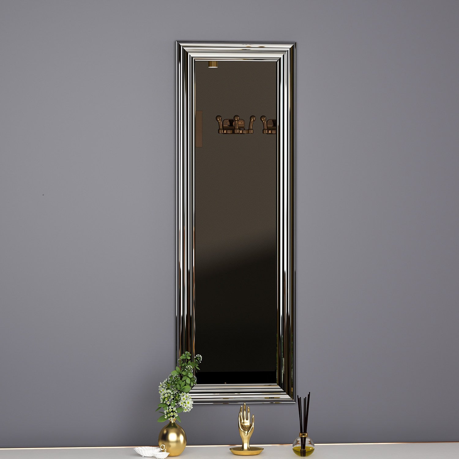 Espelho de cômoda elegante com moldura prateada, 30 x 90 cm | 100% MDF, Flotal-E ecológico | Montável na parede, um complemento elegante para qualquer quarto ou closet