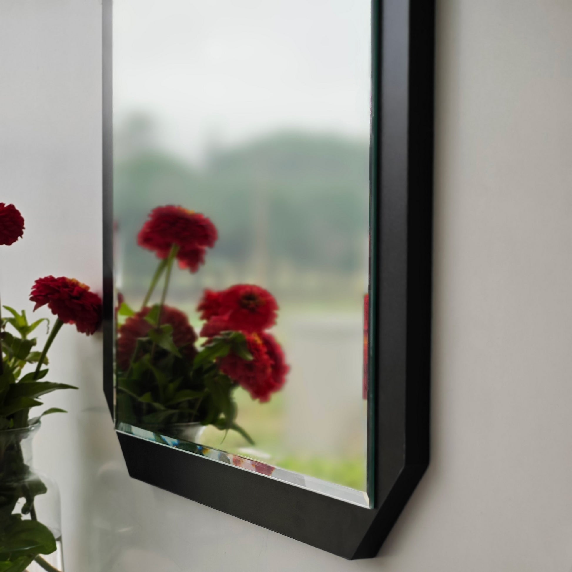Espelho elegante de parede preto, 70 x 70 cm | Painel de partículas 100% revestido em melamina, cintas de PVC | Design ajustável e ecológico para espaços modernos