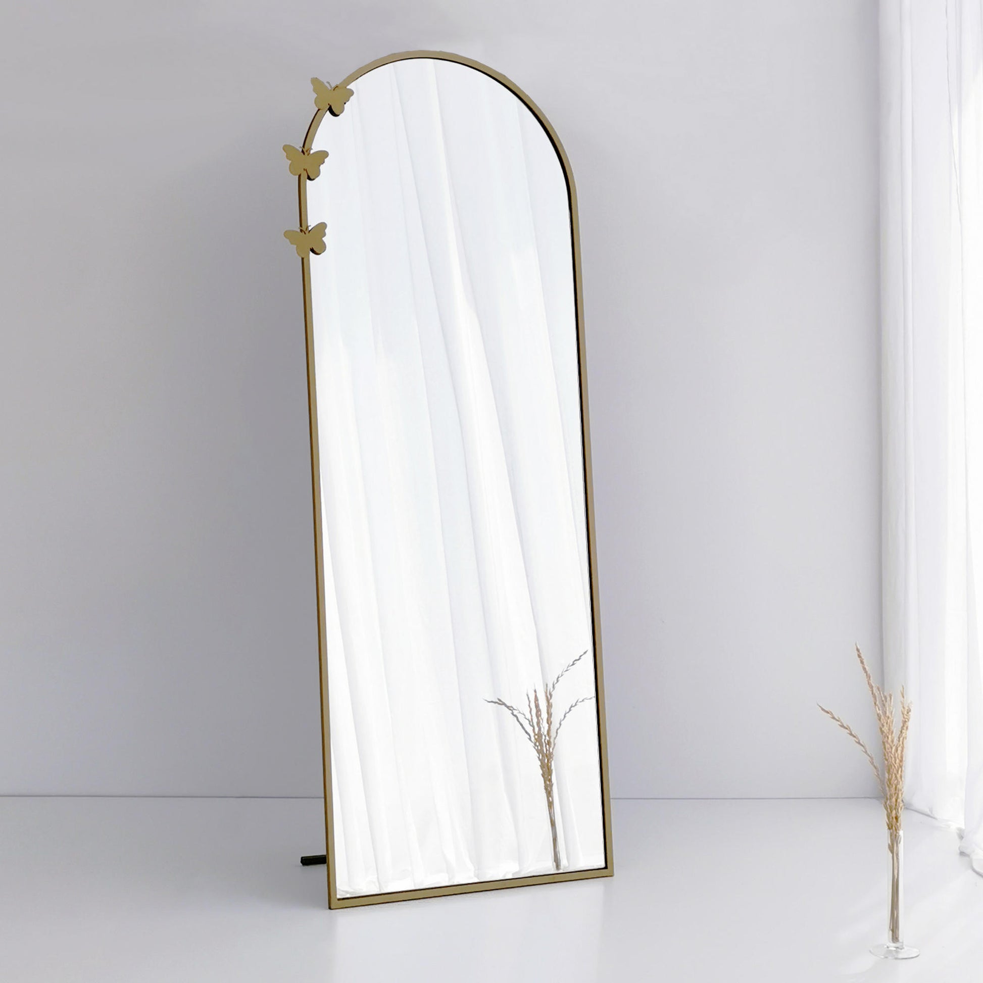 Espelho Cheval Elegante, Dourado Fosco, 65 x 180 x 1,5 cm | Estrutura 100% Metal, Resistente à Umidade, Montável na Parede, Ajustável | Design Moderno e Glamouroso para Qualquer Espaço