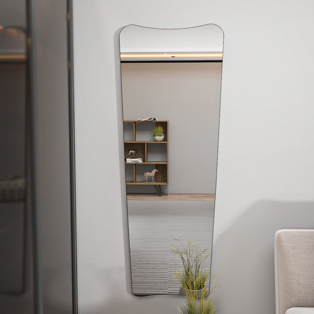 Espelho Cheval elegante, 55 cm x 150 cm, 100% MDF, espelho ecológico Flotal-E, para montagem na parede, design elegante transparente e preto para espaços modernos