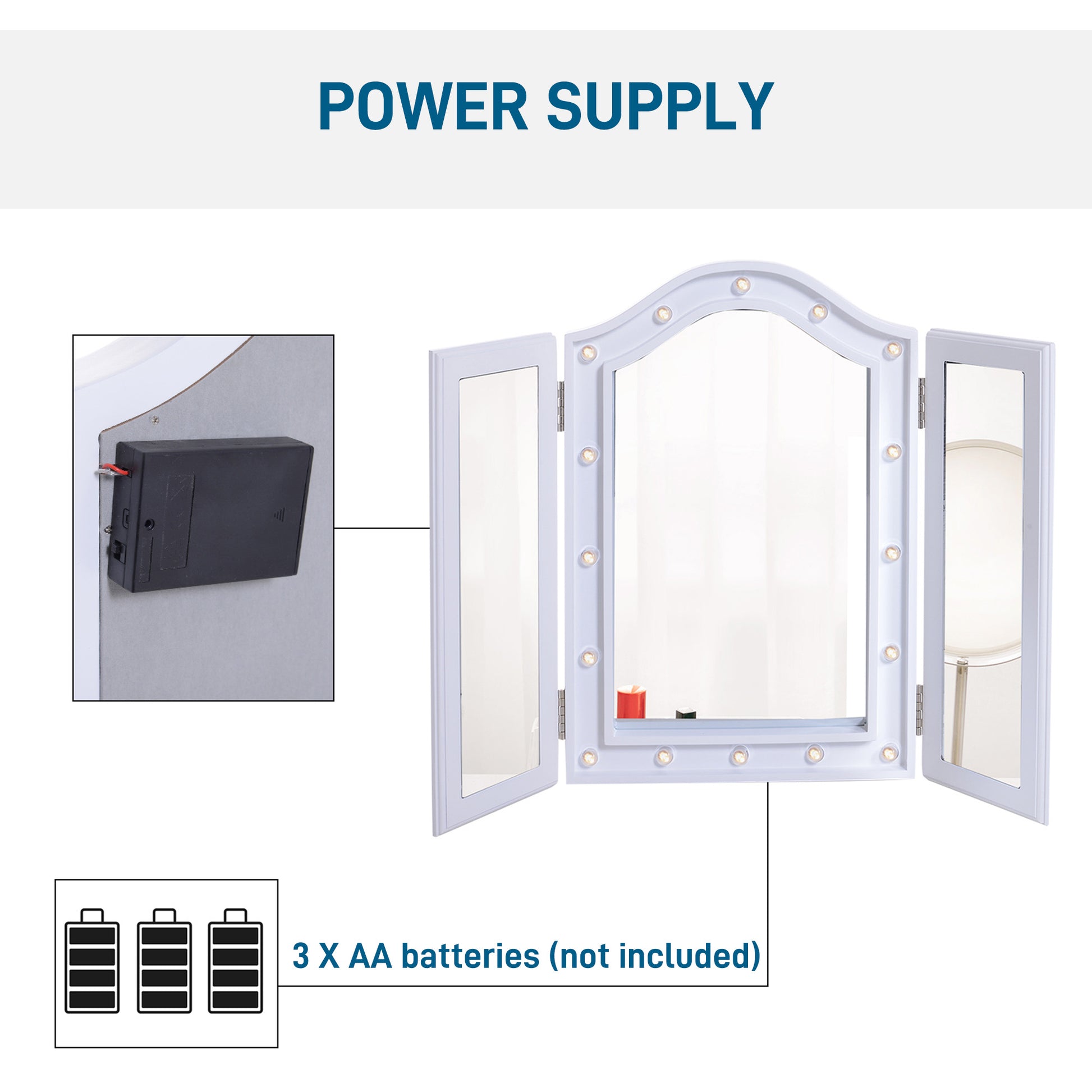 Espelho de Maquilhagem Triplo com Luz LED - 73x53,5x4,5cm - Branco