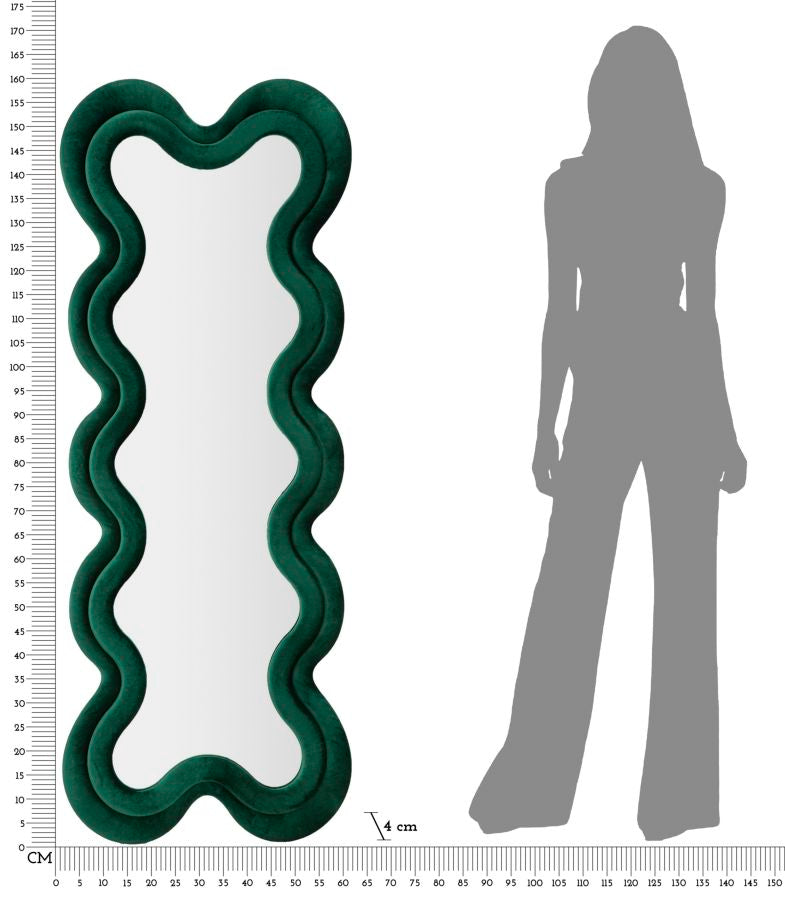 Descubra o espelho de parede GLAM, uma peça única que alia elegância e funcionalidade. Com uma moldura em madeira MDF revestida em veludo verde, este espelho é perfeito para adicionar um toque vintage e sofisticado à sua casa. Ideal para ambientes com um design requintado, o GLAM não só embeleza como também amplia o espaço, tornando-o mais acolhedor e sofisticado. Transforme o seu espaço com este espelho de alta qualidade e design excecional.