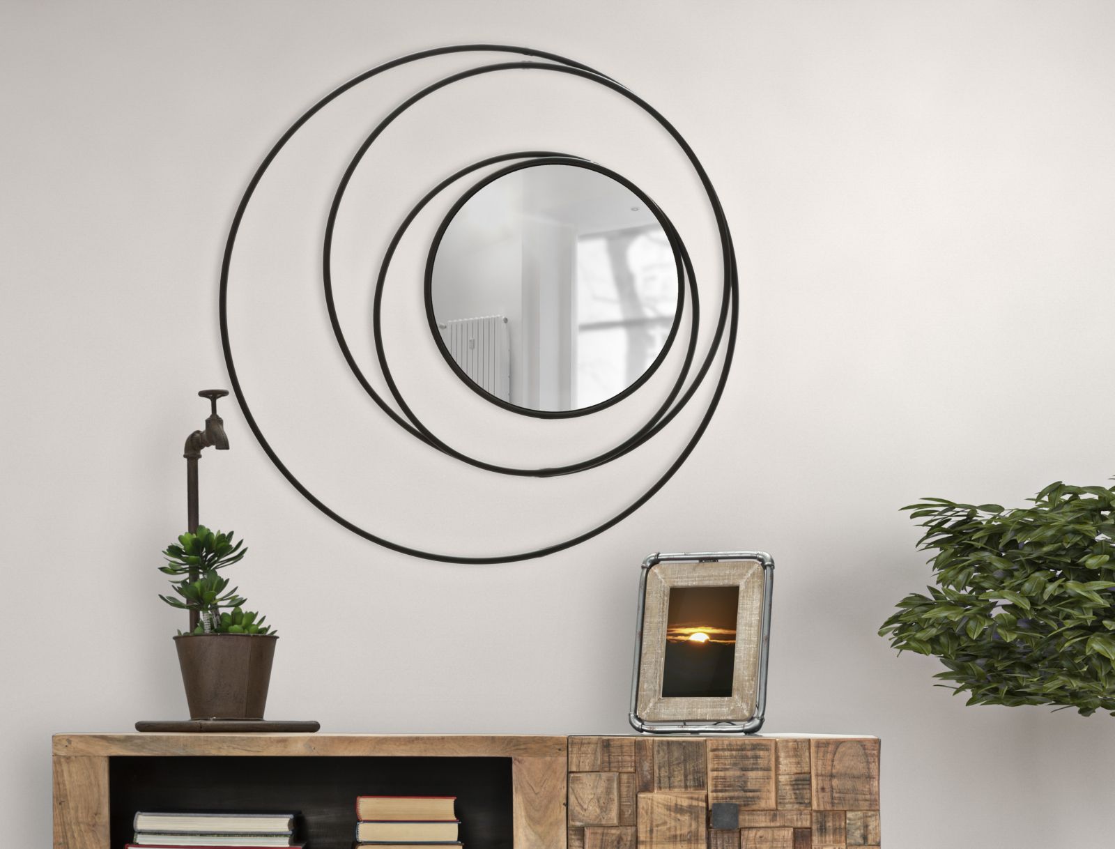 Descubra o espelho de parede redondo INDUSTRIAL, uma peça essencial para quem procura aliar funcionalidade e design moderno. Com uma estrutura em ferro e acabamento preto elegante, este espelho não só amplifica a luminosidade do seu espaço, como também cria um ponto de luz sofisticado. Os seus elementos decorativos geométricos adicionam um toque de vanguarda, transformando qualquer ambiente num cenário de requinte e amplitude. Ideal para casas modernas que valorizam a estética e a qualidade.