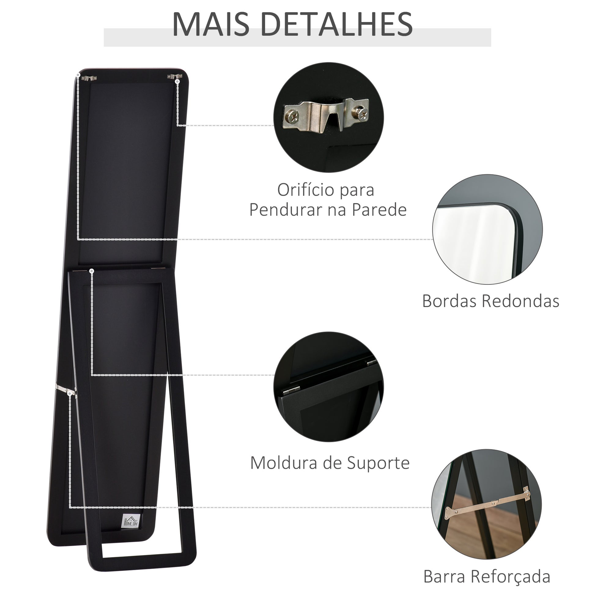 Adicione um toque de elegância e funcionalidade ao seu espaço com este espelho de pé de corpo inteiro em cor preto. Com medidas de 37x43x156 cm, este espelho é perfeito para obter uma vista completa do seu corpo, proporcionando uma sensação de amplitude e luminosidade ao ambiente.