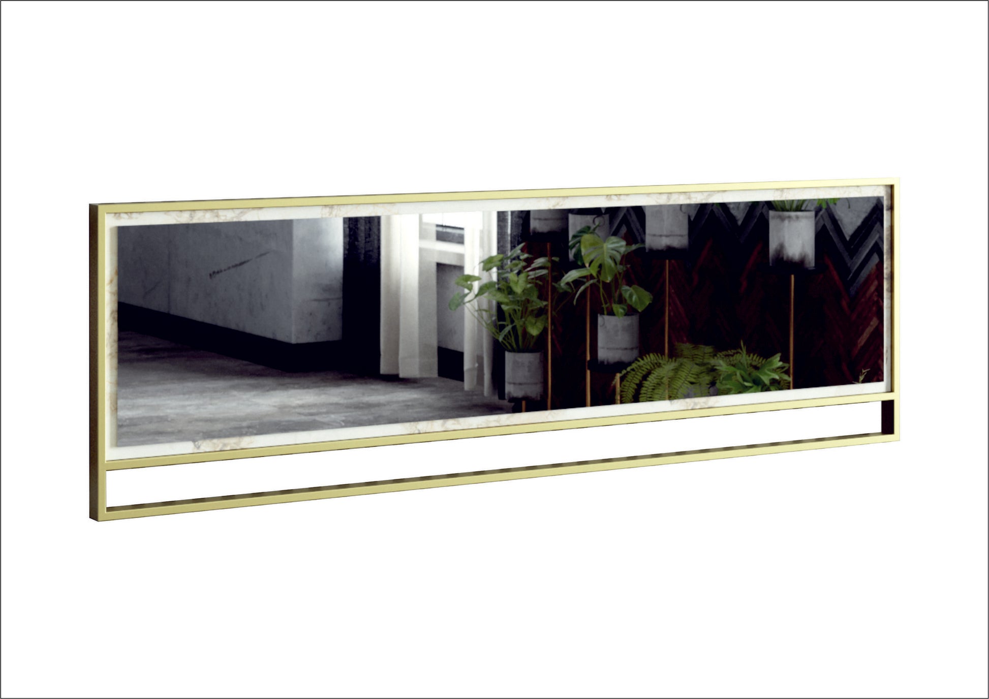 Espelho decorativo elegante de madeira, dourado e branco, 121,8 x 37,8 cm | Painel de partículas 100% revestido de melamina e estrutura de metal | Design moderno e glamouroso, para montagem na parede