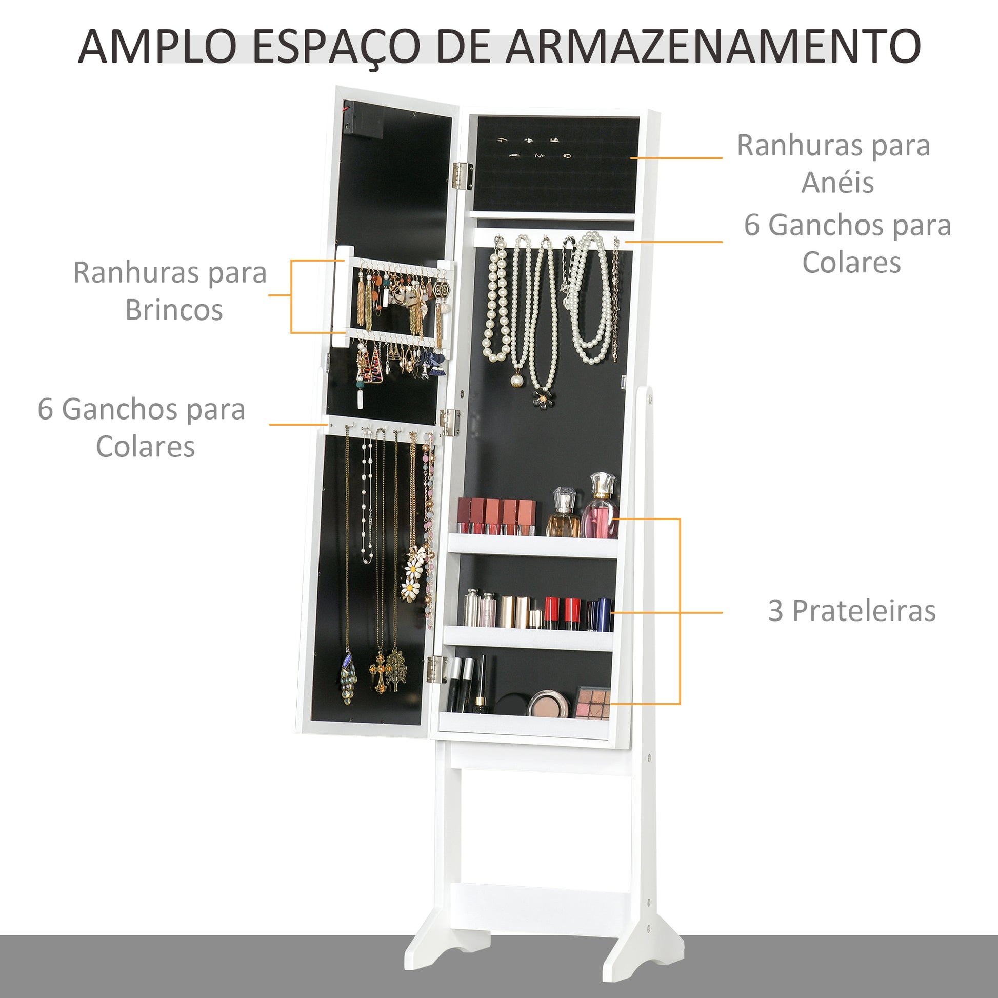 Este espelho joalheiro de pé é o acessório perfeito para manter as suas jóias organizadas e em segurança. Fabricado com painel de MDF de alta qualidade, este armário para jóias é resistente e durável, com interior forrado com tecido preto para proteger suas jóias de danos.