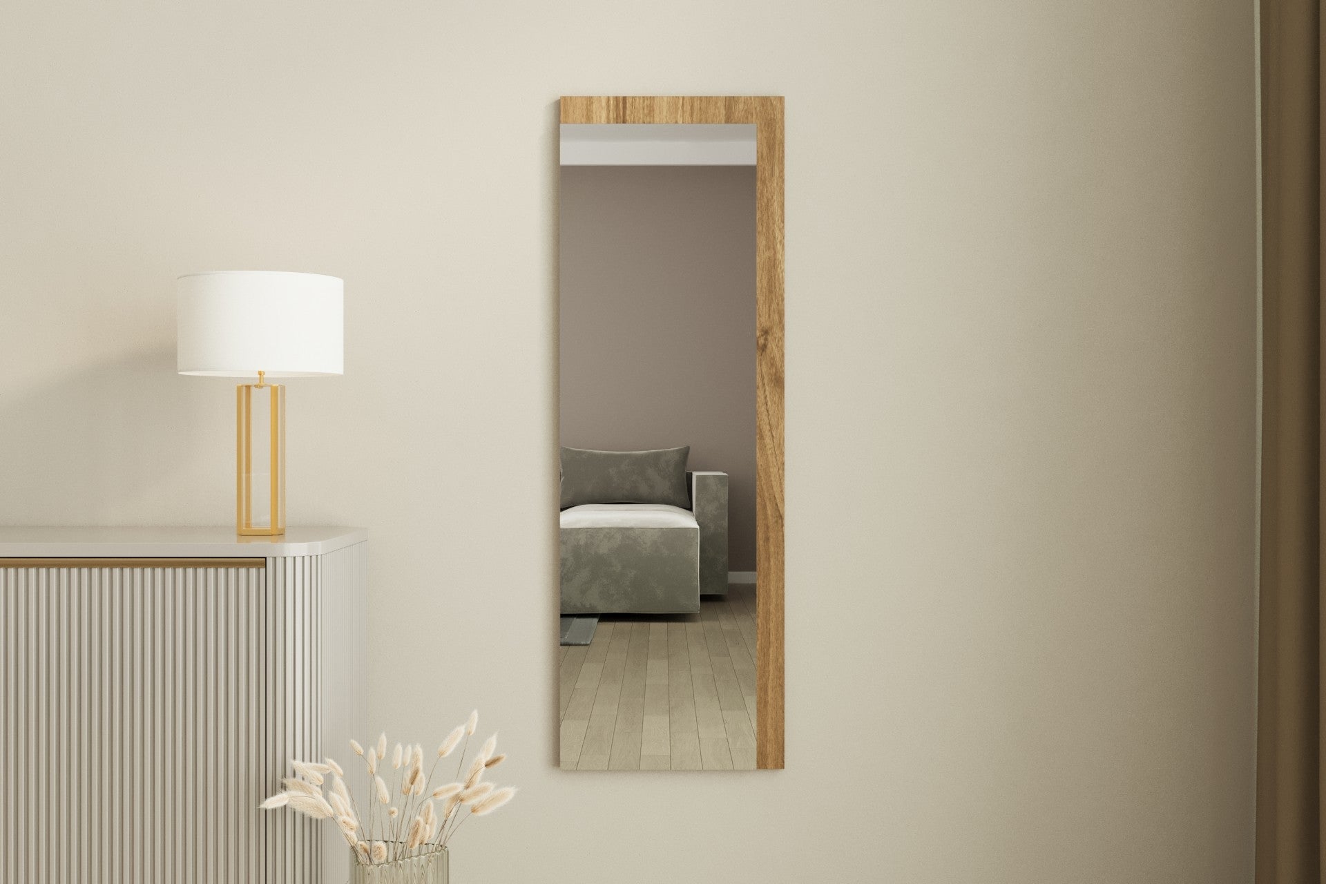 Espelho de parede elegante, 40 x 120 cm, branco e nogueira | 100% MDF, design ecológico Flotal-E | Perfeito para decoração e espaços modernos