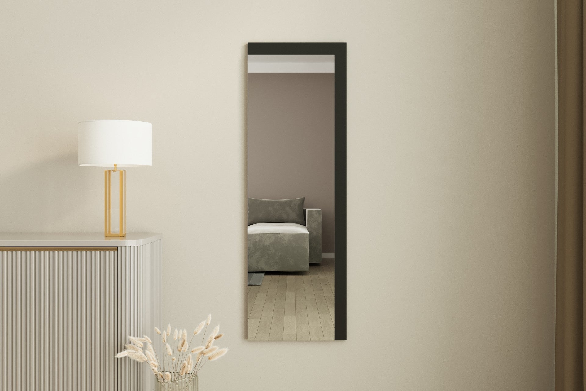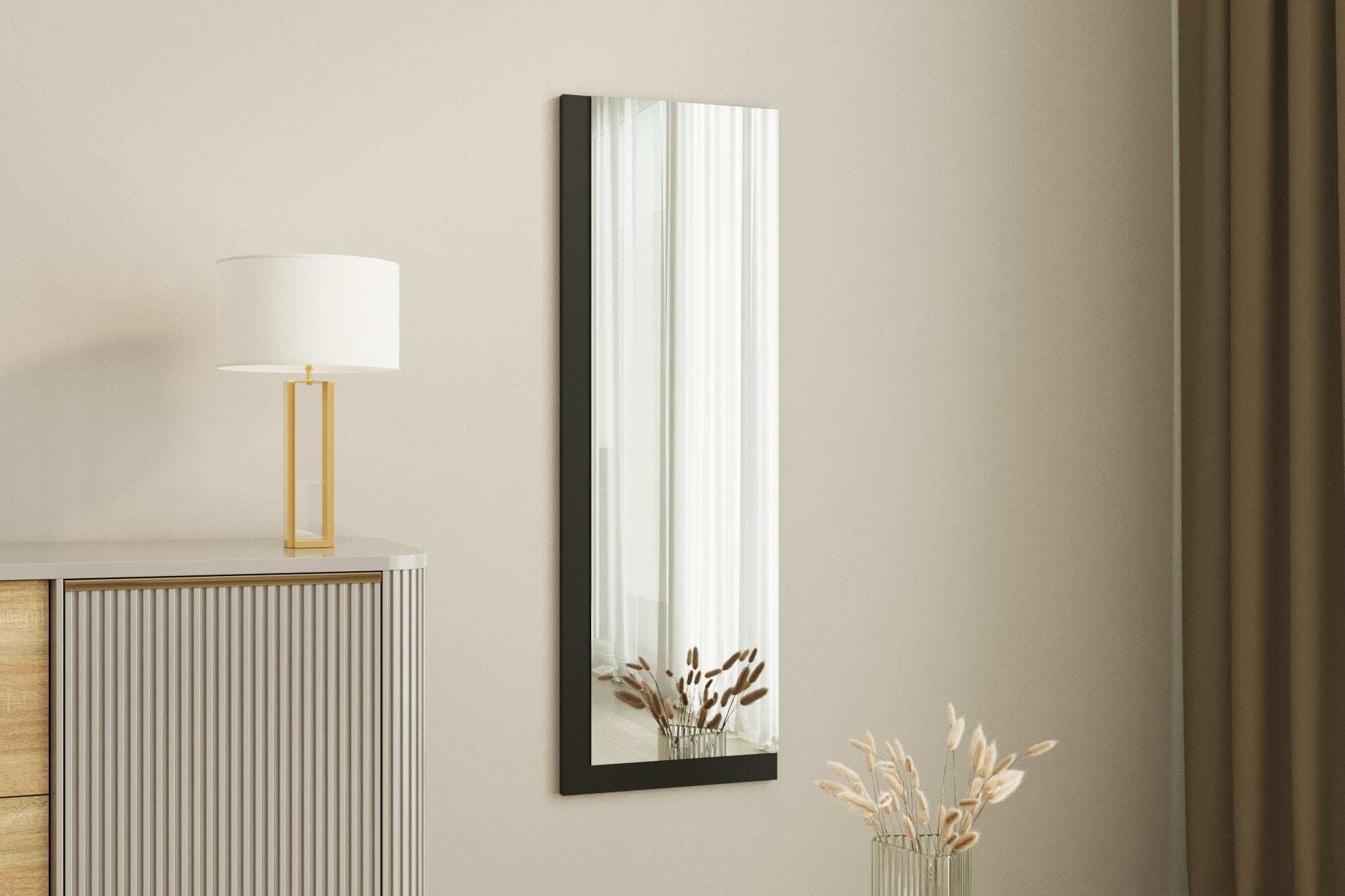 Espelho de parede elegante, 40 x 120 cm, 100% MDF, design ecológico Flotal-E, acabamento elegante em preto e branco | Perfeito para decoração moderna