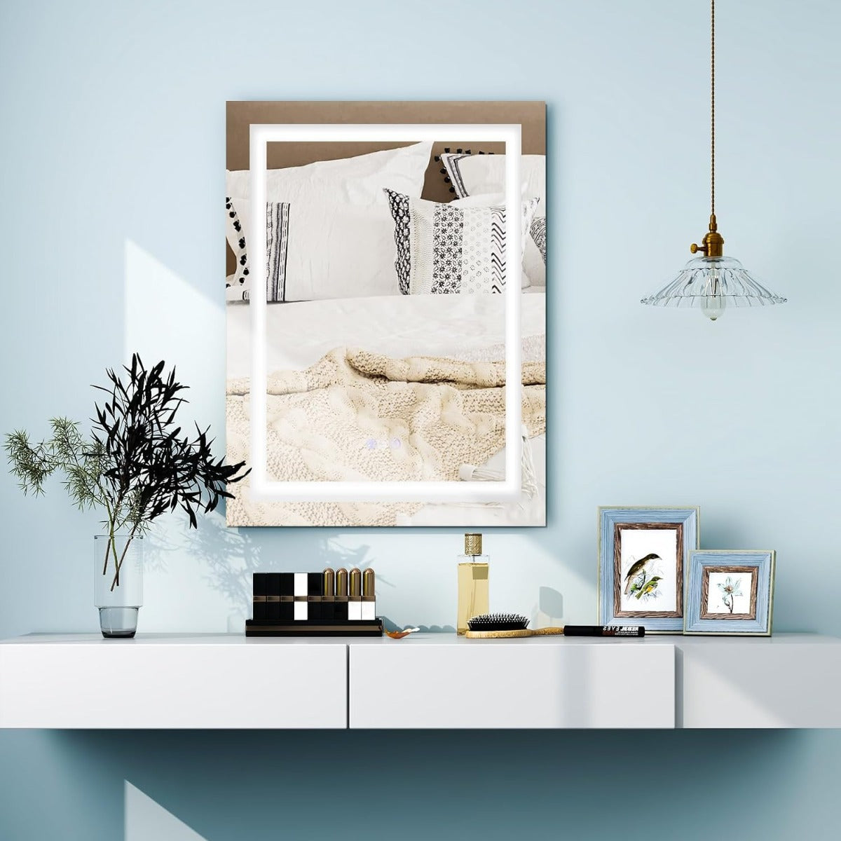 Desfrute de um reflexo vívido e claro com o espelho de alta definição. Ajuste facilmente a temperatura da cor e o brilho de acordo com as suas preferências. O nosso espelho de parede está desenhado para uma manutenção fácil.