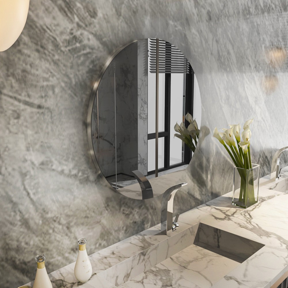 Espelho de parede elegante, 70 cm x 70 cm, cinza escuro e prata | 100% MDF, design ecológico Flotal-E | Perfeito para decoração moderna