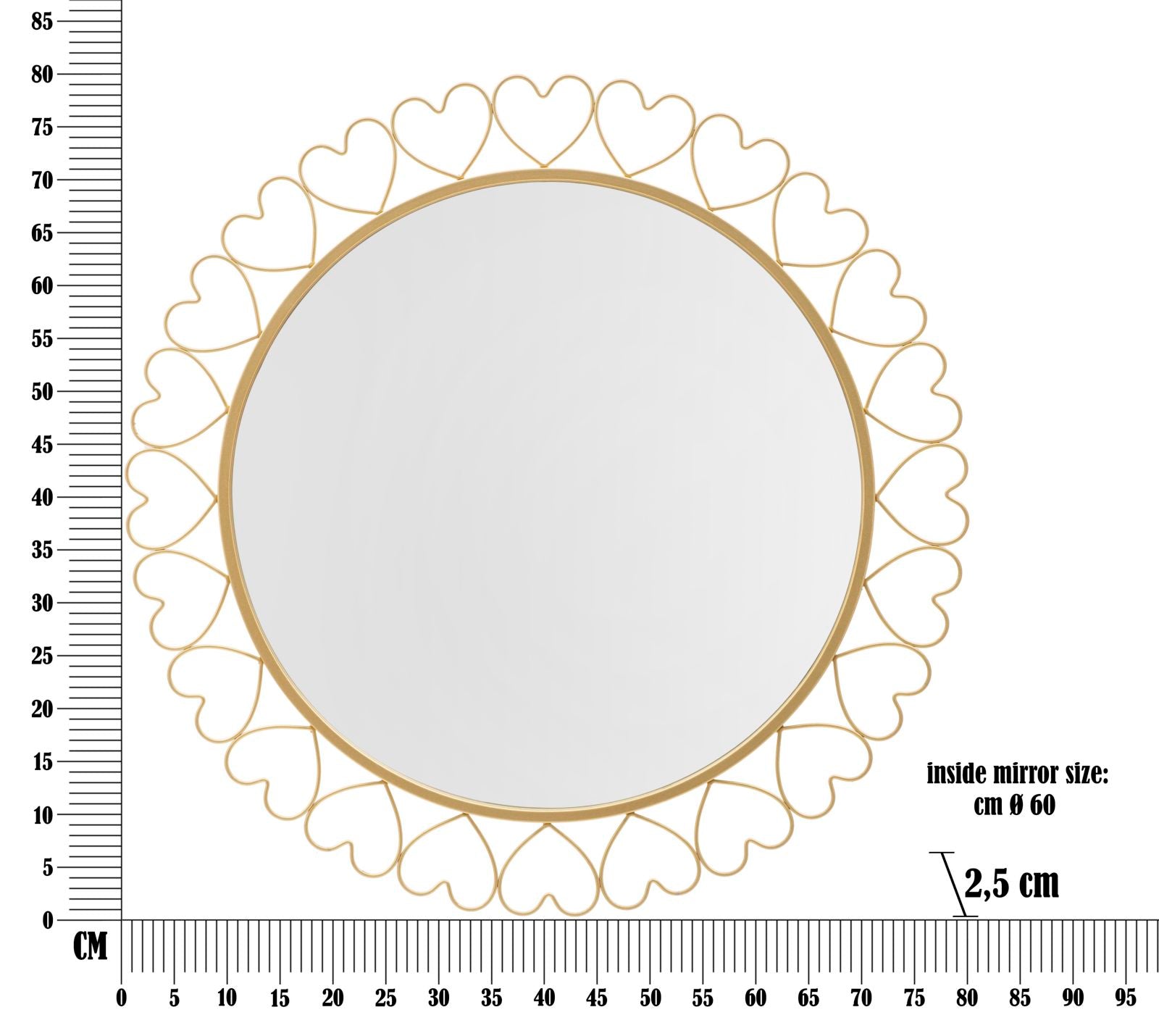 Descubra o charme irresistível do espelho redondo GLAM, com uma moldura em metal dourado adornada por delicados corações. Este espelho não é apenas um elemento funcional, mas uma peça de arte que transforma qualquer espaço numa obra-prima de elegância e sofisticação. Fabricado com materiais de alta qualidade, como ferro, MDF e vidro espelhado, o GLAM é a escolha perfeita para quem valoriza o design e a durabilidade. Adicione um toque de delicadeza e requinte à sua casa com este espelho deslumbrante.