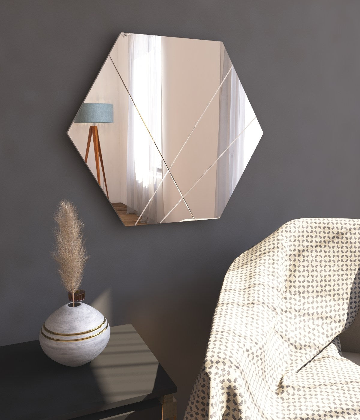 Melhore o seu espaço com o requintado espelho hexagonal