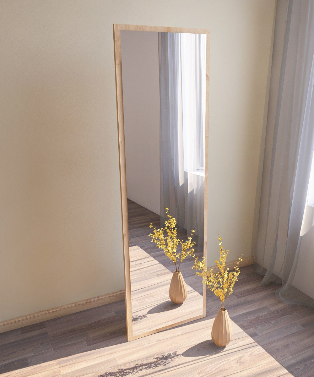 Espelho de chão elegante, 50 cm x 160 cm, 100% MDF, Flotal-E ecológico, para montagem na parede, cor natural | Perfeito para decoração de casa e closets